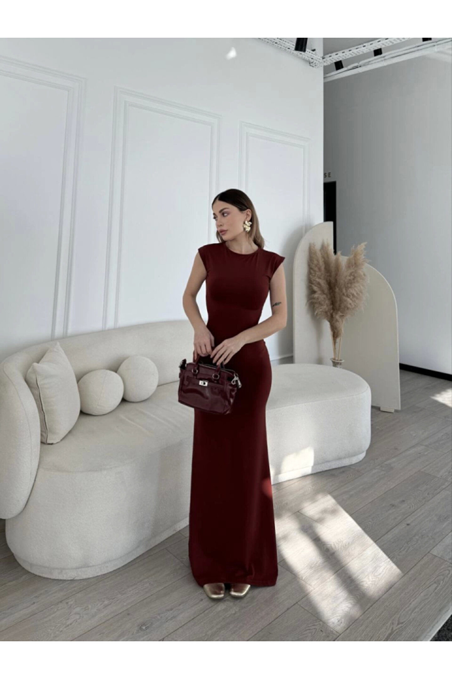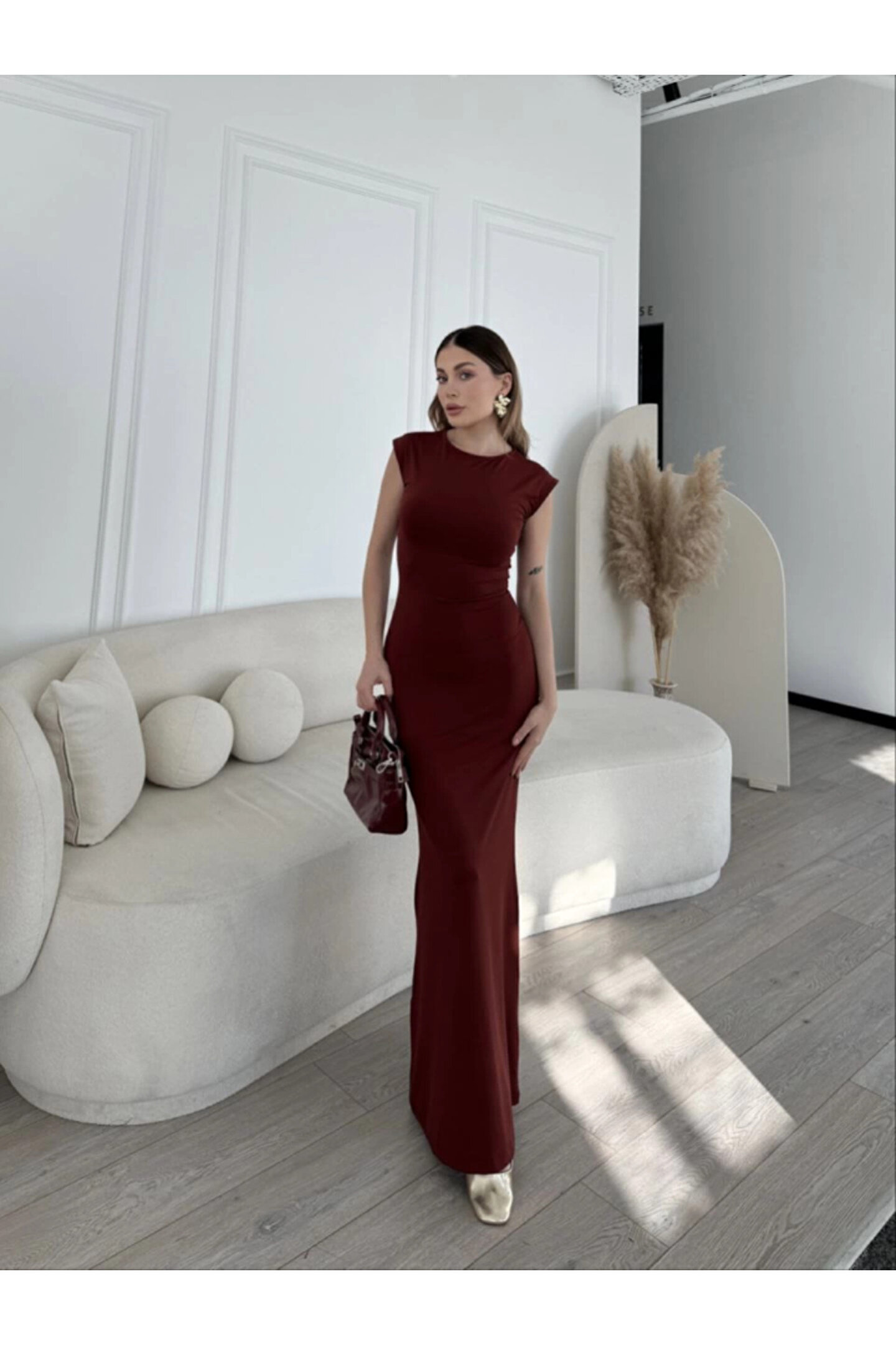 Silerra Kolsuz Uzun Likralı Elbise - Bordo