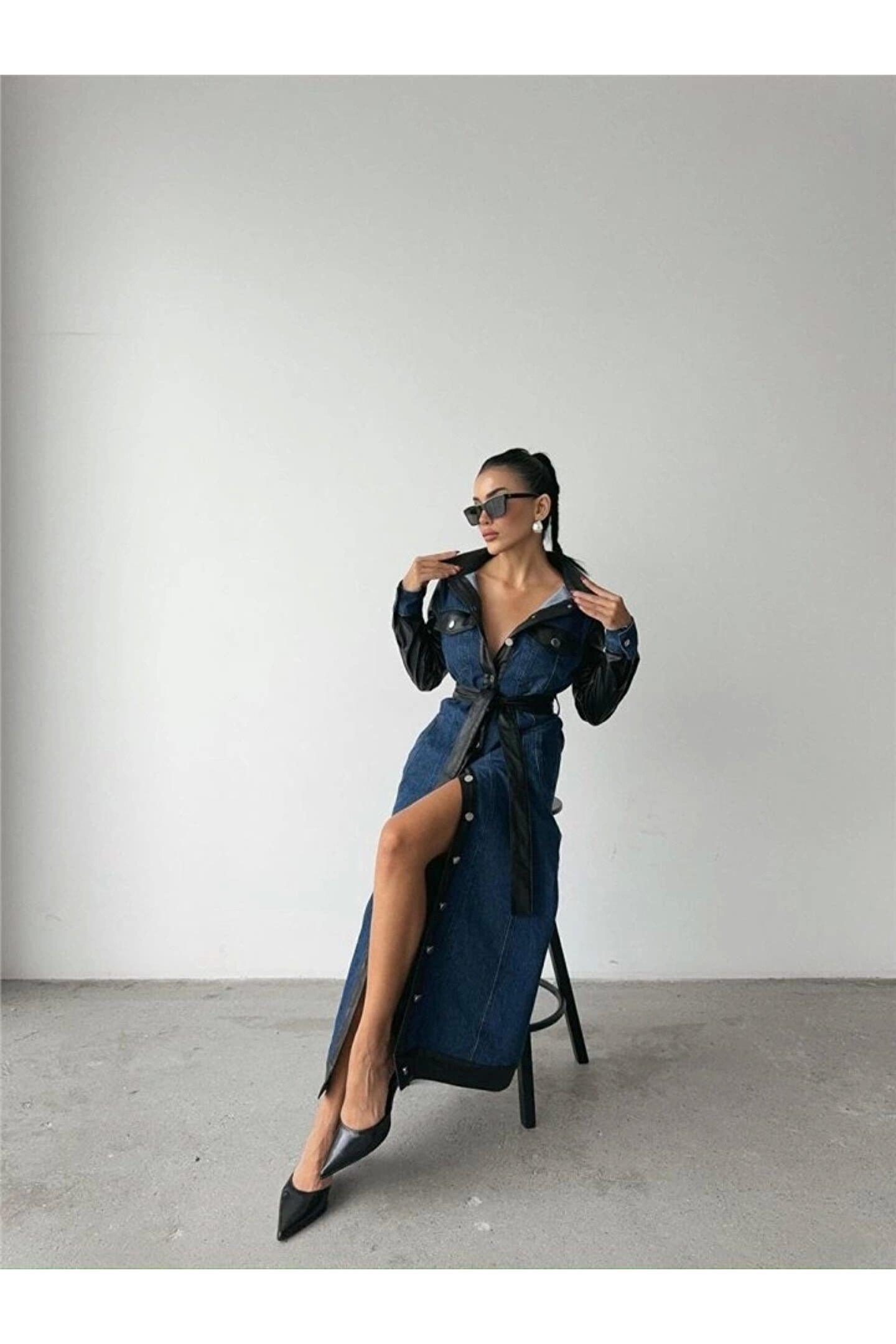 KOT ELBİSE UZUN ÖNDEN DÜĞMELİ - Mavi