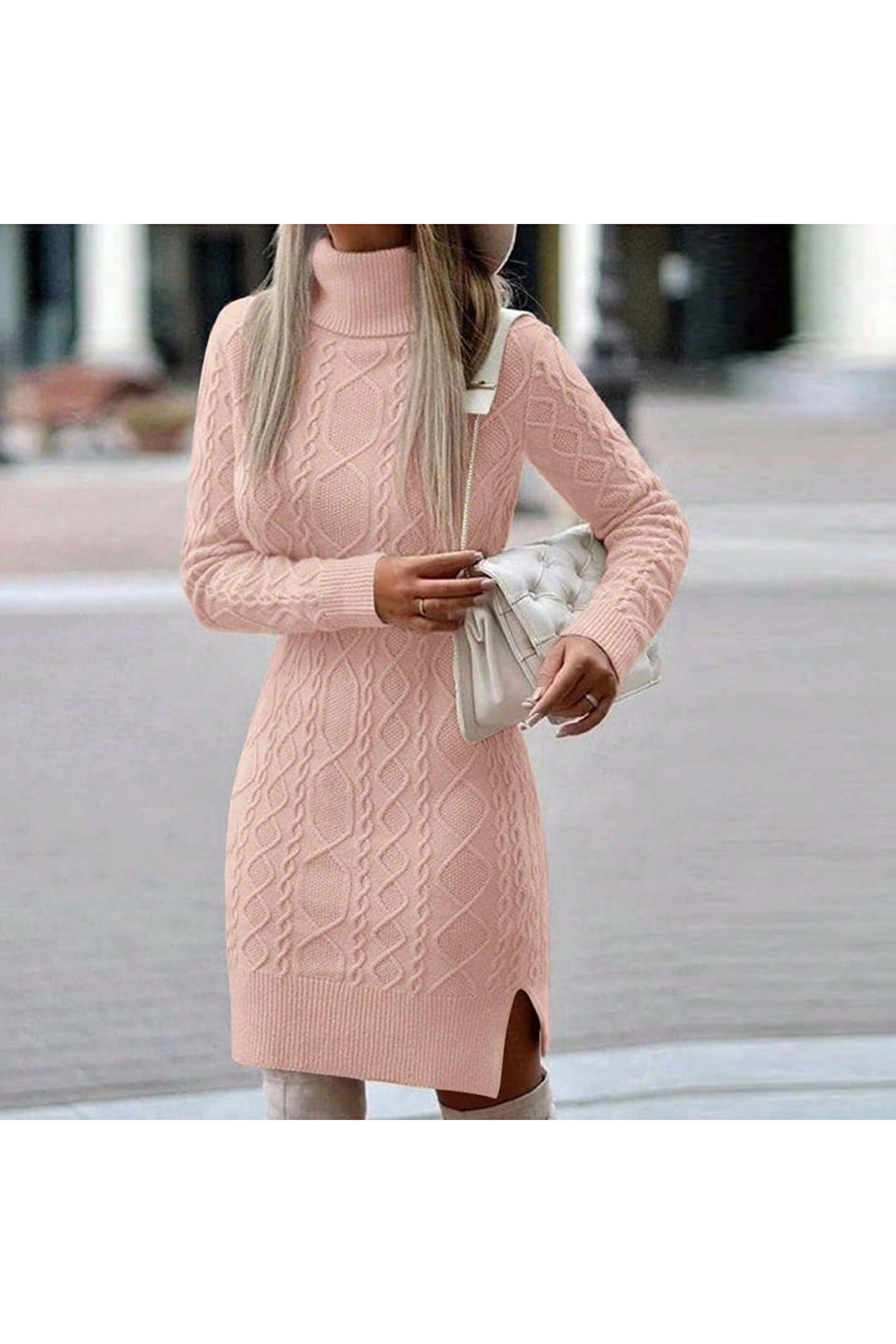 Loren Yünlü Motifli Midi Boy Triko Elbise