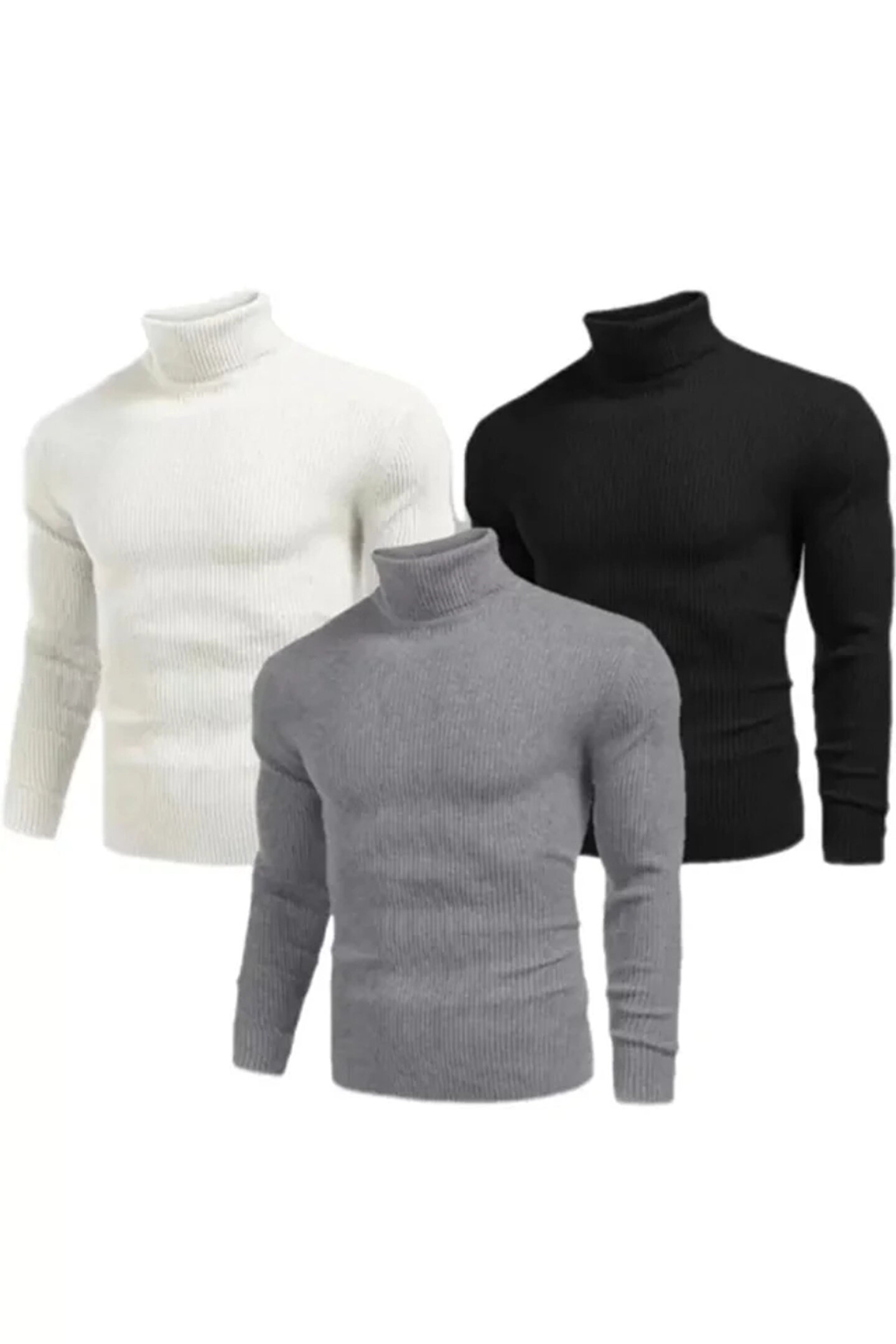 3 Adet Unisex Kaşkorse Boğazlı Full Likralı Fitilli Body Kazak