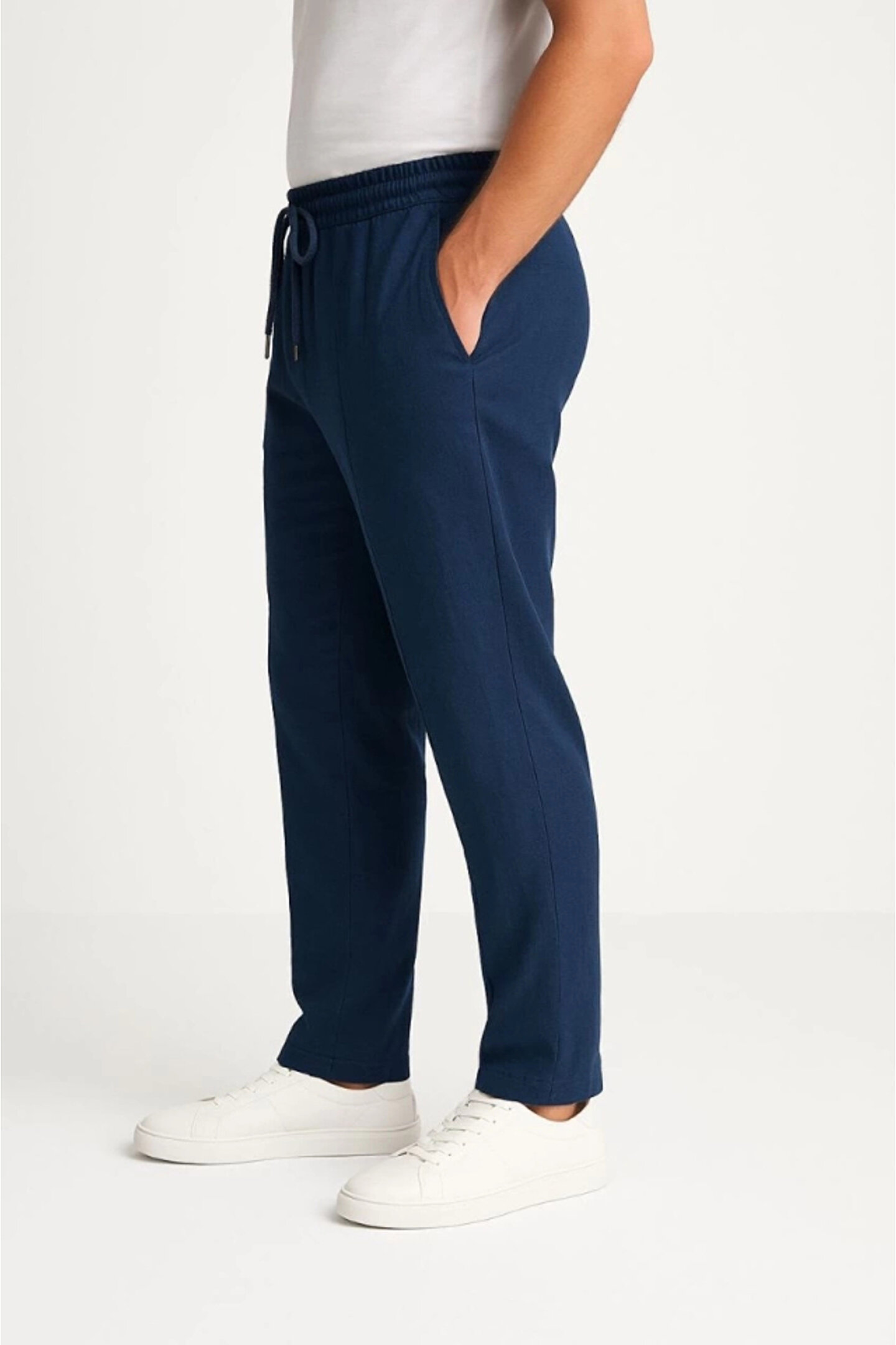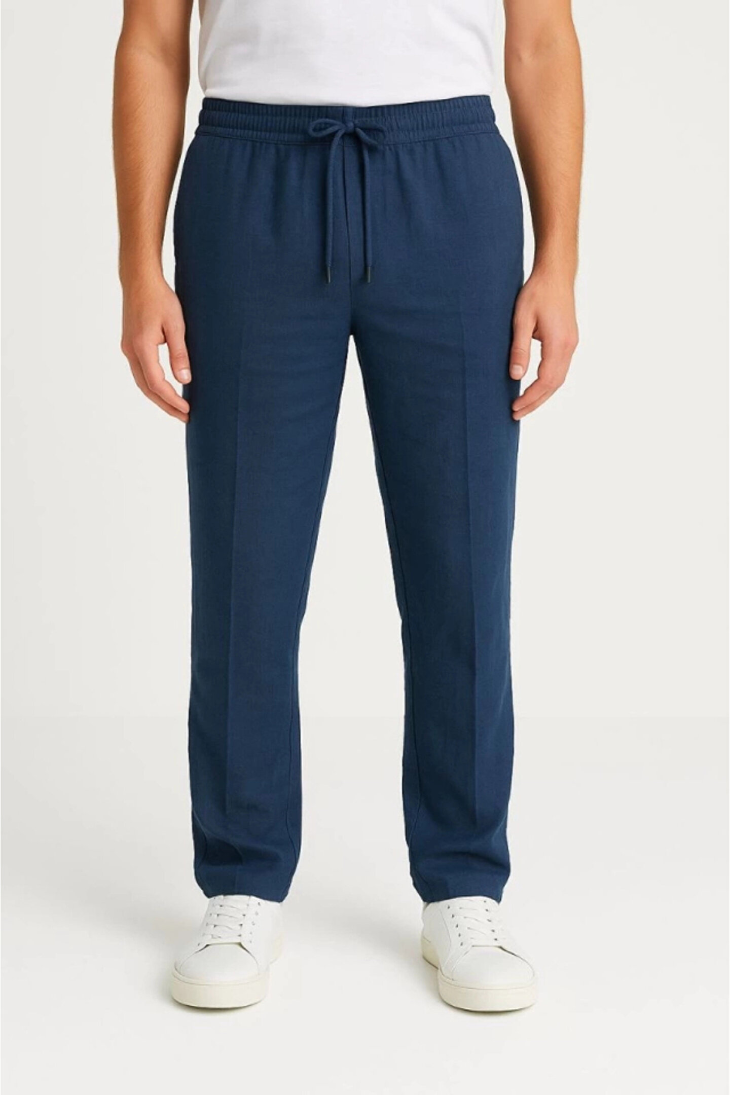 Erkek Keten Pantolon – Cepli, Beli Lastikli Ve Bağcıklı, Nefes Alan Rahat Kalıp, Yazlık Ve Baharlık Günlük Giyim, Şık - Konforlu Boru Paça Model - Lacivert