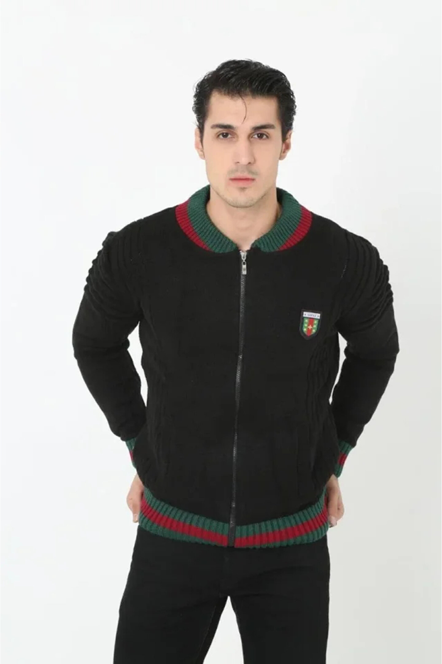 - Siyah renk seçeneğiyle şıklığı ve kolay kombinlenebilirliği bir arada sunar.; - Uzun kollu tasarımı ile mevsim geçişlerinde ideal bir kullanım sağlar.; - Triko materyali sayesinde yumuşak dokusuyla konforlu bir deneyim sunar.; - Dik yaka tasarımı, modern ve şık bir görünüm kazandırır.; - Casual tarzıyla günlük kullanım için uygundur, rahatlığı ön planda tutar.; - Polyester, pamuk ve elastan karışımı materyal bileşeni ile dayanıklılık ve esneklik sunar.; - Standart boy ve regular kalıp ile vücuda tam oturan bir yapıya sahiptir.; - Cepli tasarımı küçük eşyalarınızı yanınızda taşımanız için pratik bir çözüm sunar.; - Düz deseniyle sade ve zamansız bir stil oluşturur.; - Kemersiz yapısı ile minimalist bir görünüm sağlar.