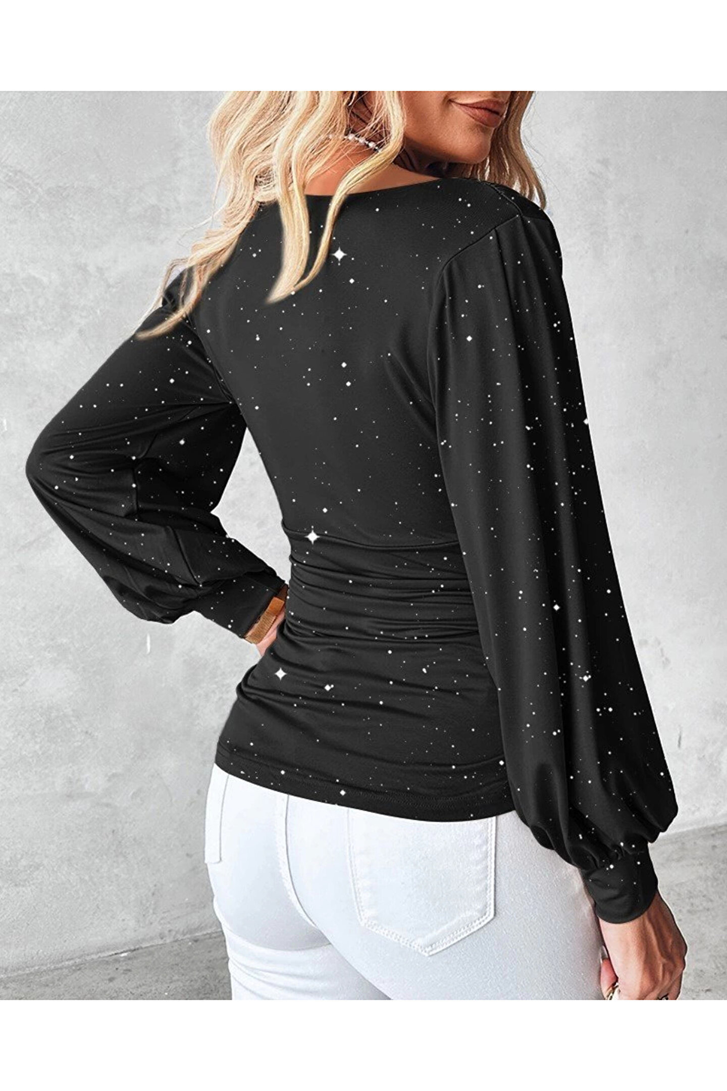 Kadın Uzun Kollu Degaje Yaka Taşlı Sandy Bluz