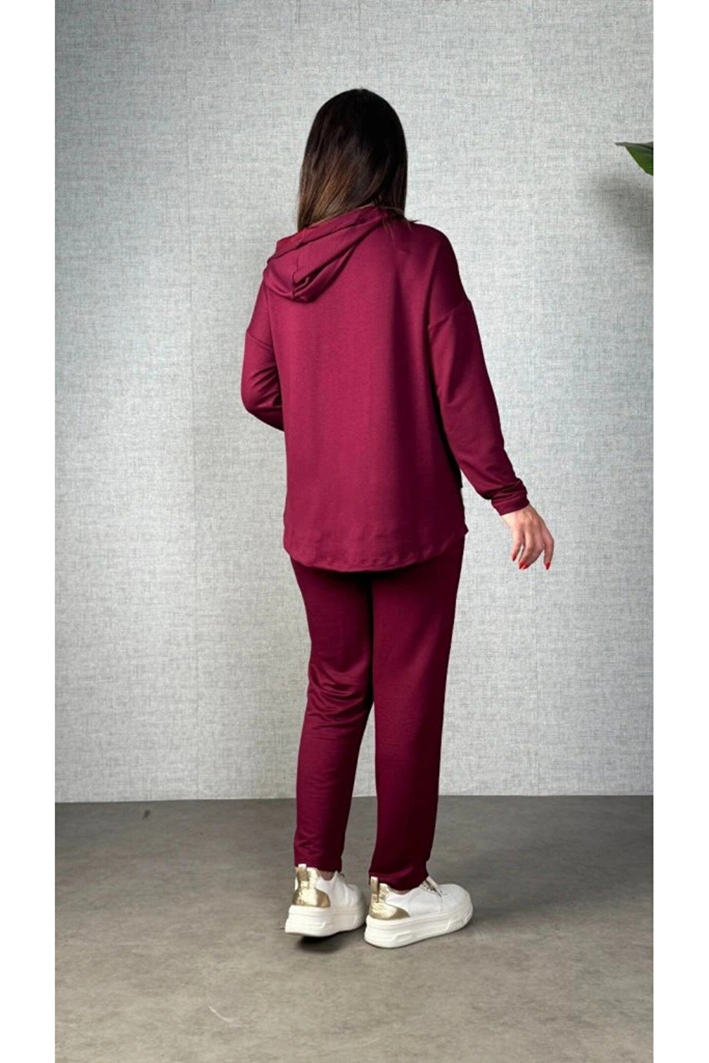 Kadın Uzun Kollu Kapşonlu Bağcıklı Viskon Iki Iplik Bluz Ve Pantolon Ikili Takım