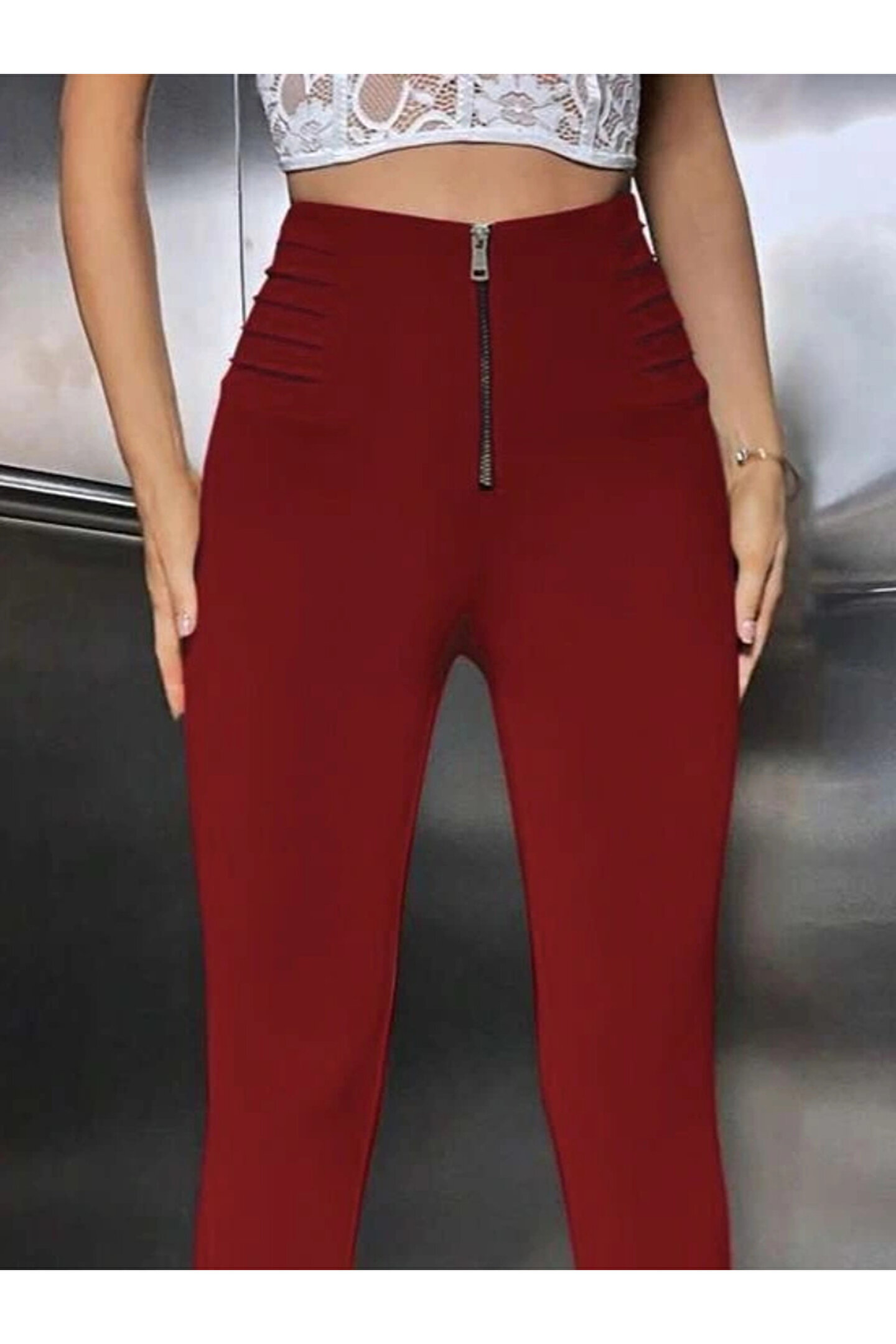 Kadın Yüksek Belli önden Fermuar Ve Nervur Detaylı Dalgıç Tayt