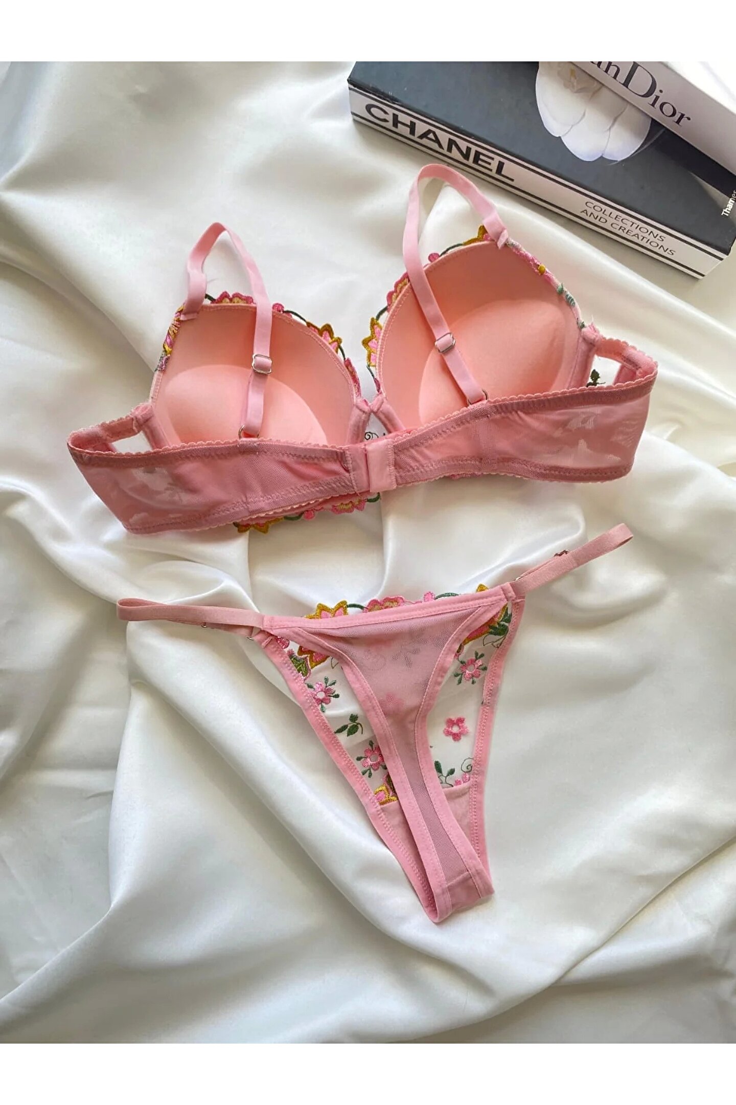 Ürün Detayları Destekli-Balenli-Kaplı-Telli Melina Brode Takım Zarafetinizi ortaya çıkarın ve Melina koleksiyonu ile doğanın güzelliğini üzerinizde taşıyın.; İnce detaylarla işlenmiş bu özel tasarım, zarif çiçek motifleri ile lüks işçiliği bir araya getiriyor.; Hafif tül panelleri ve yumuşak tonları, teninize dokunan neredeyse hissedilmeyen bir rahatlık sunarken, vücudunuzu renk ve dokuların senfonisiyle kucaklıyor.; Melina doğal hatlarınızı vurgulayarak hem feminen hem de zamansız bir görünüm yaratıyor.; Rahatlık kadar şıklık da göz önünde bulundurularak tasarlanan bu koleksiyonda, ayarlanabilir askılar ve özenle hazırlanmış kesim mükemmel bir uyum sağlıyor.; Takımla uyumlu tanga ise romantik ve kusursuz bir silueti tamamlıyor.