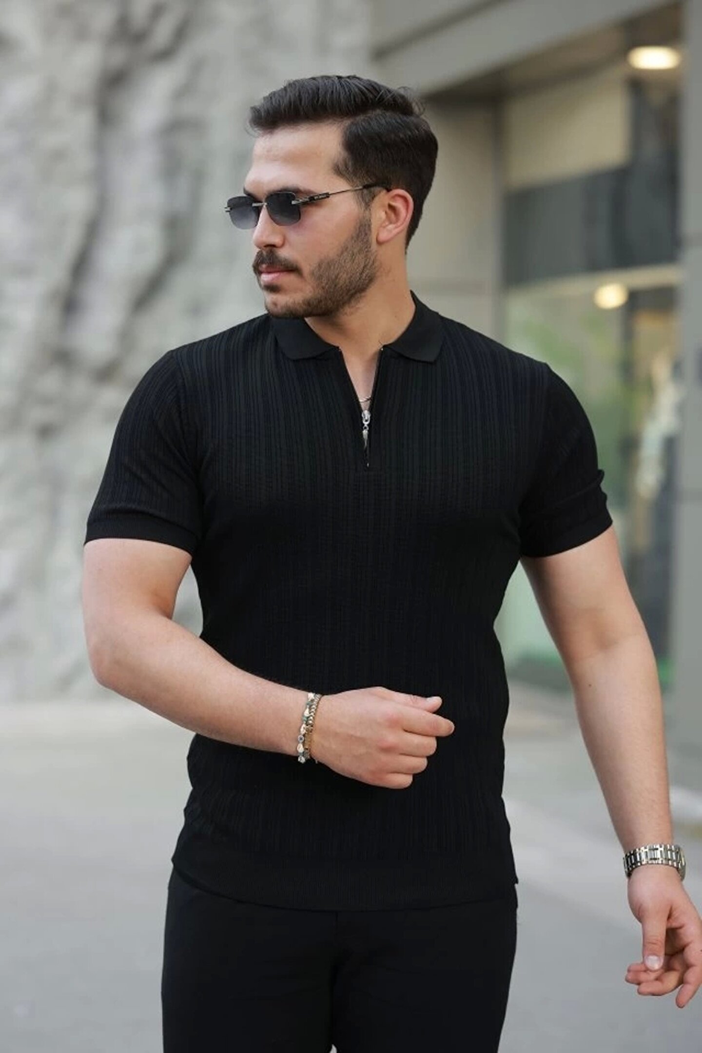 Erkek Fermuar Yakalı Kısa Kollu Tişört
