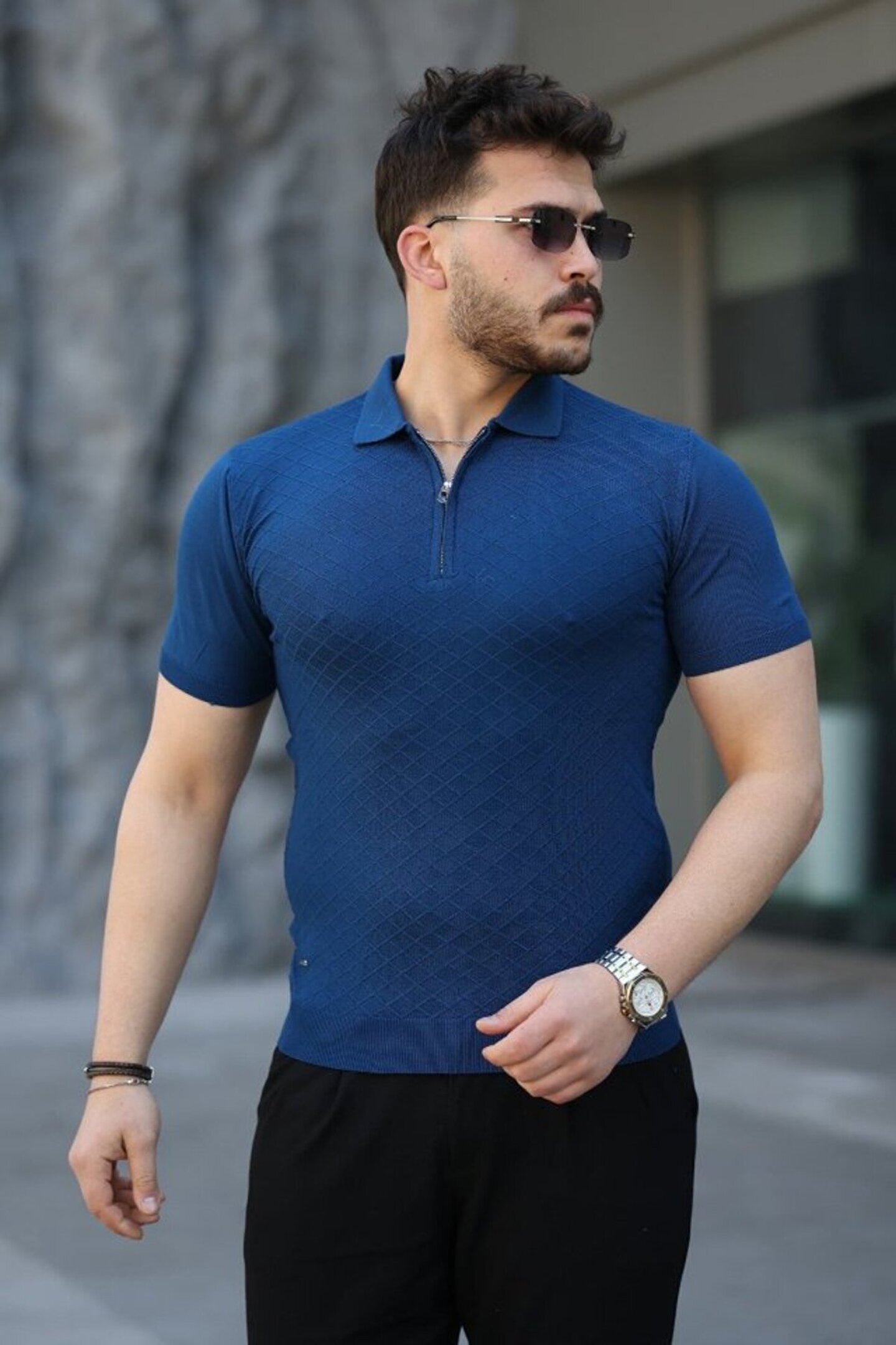Erkek Viskon Kumaş Polo Yaka Desenli Tişört