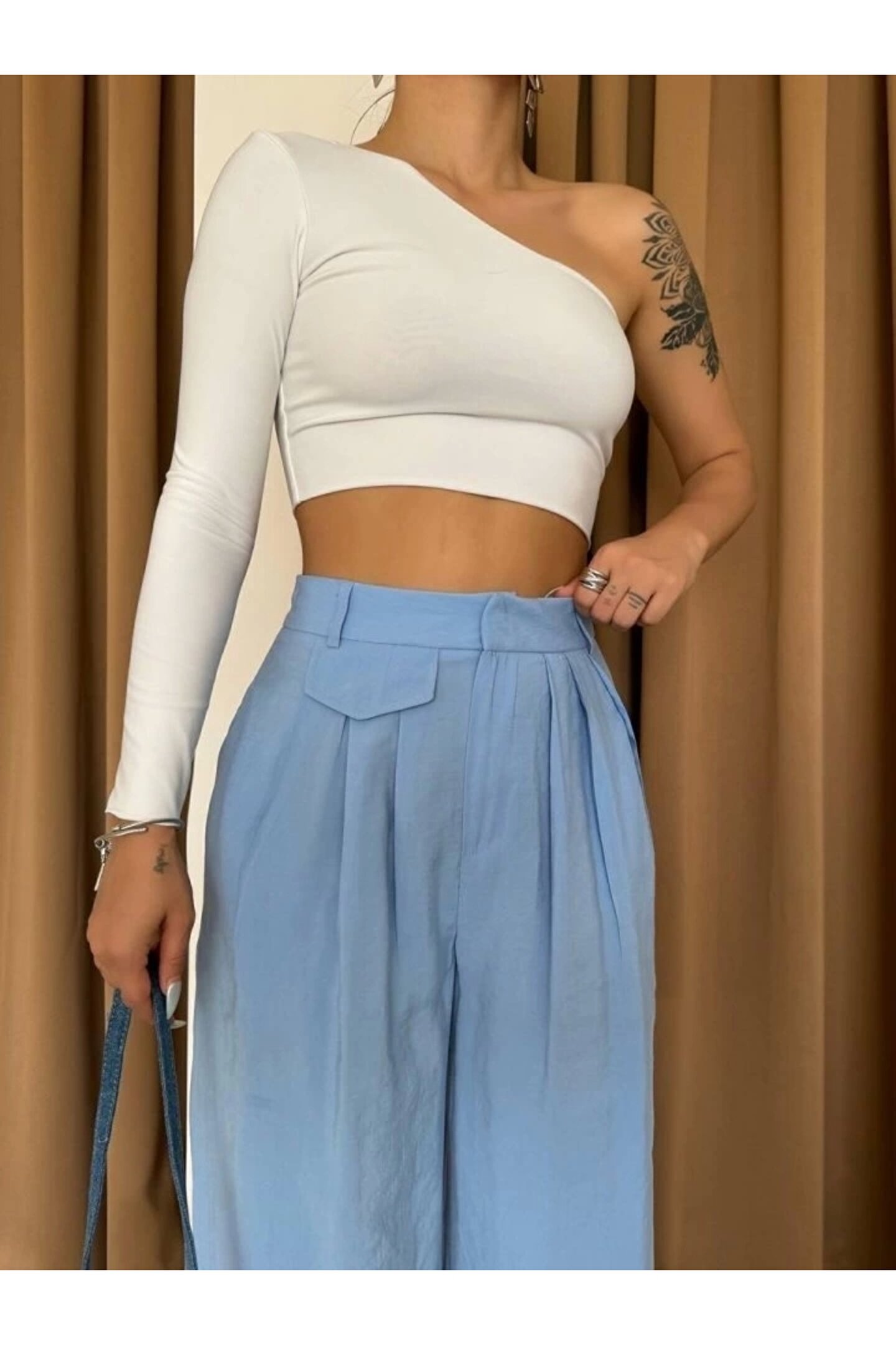 PİLE VE CEP KAPAK DEYALI SALAŞ PANTOLON - Mavi