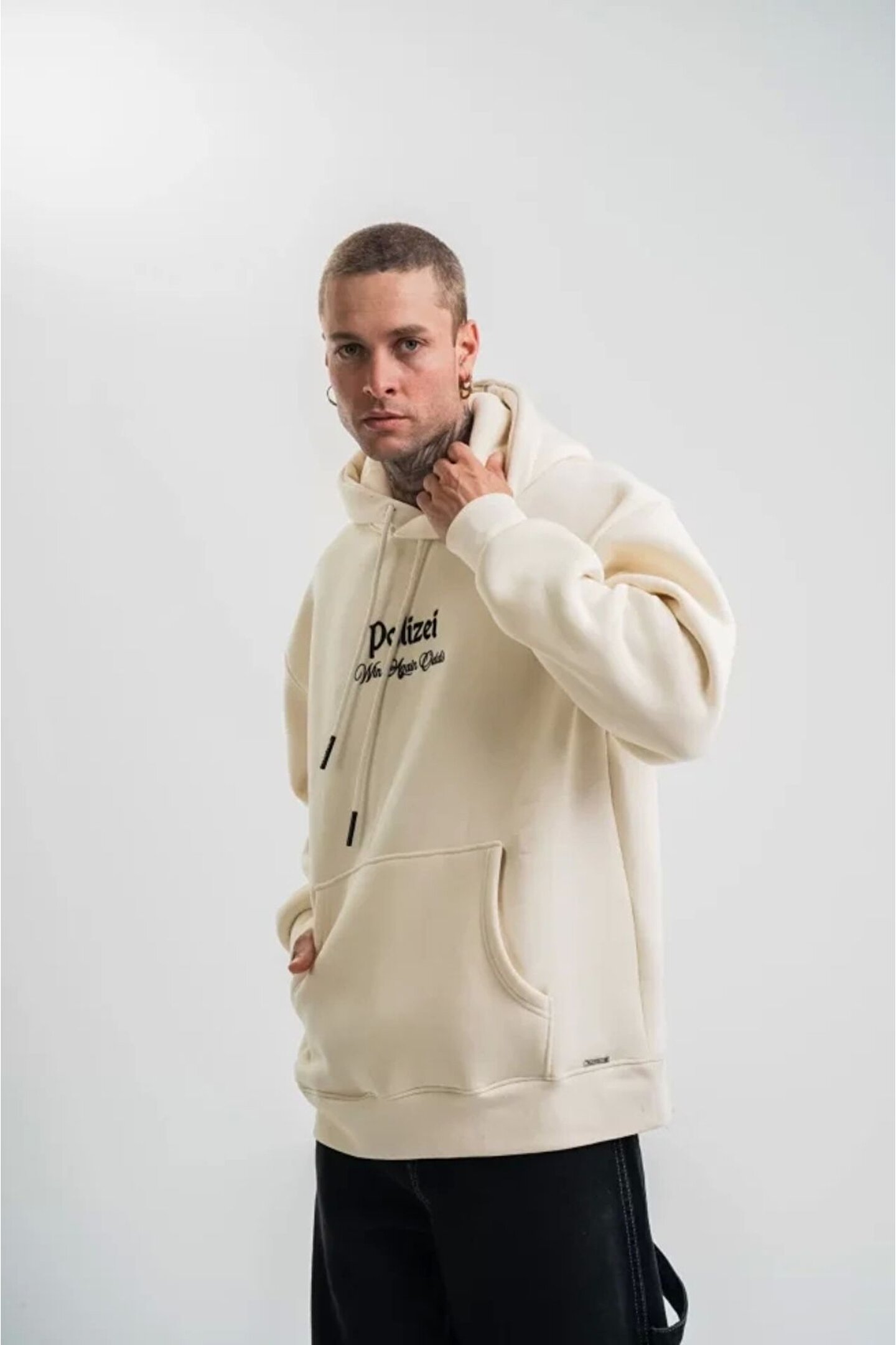 Silerra POLIZEI Premium Kalite Kapşonlu Dijital Patchli SweatShirt - Krem