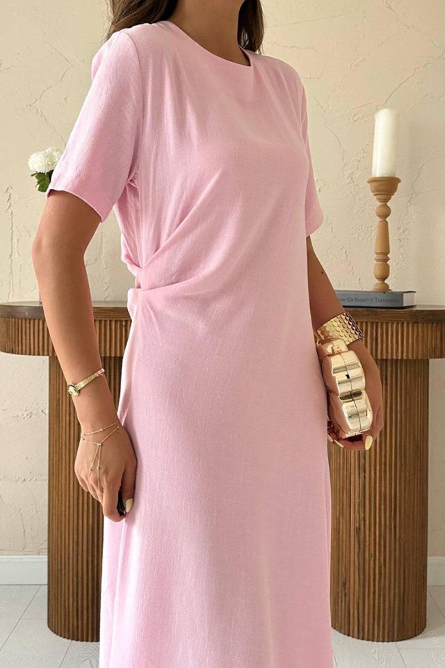 Silerra Pudra Pileli Bisiklet Yaka Elbise