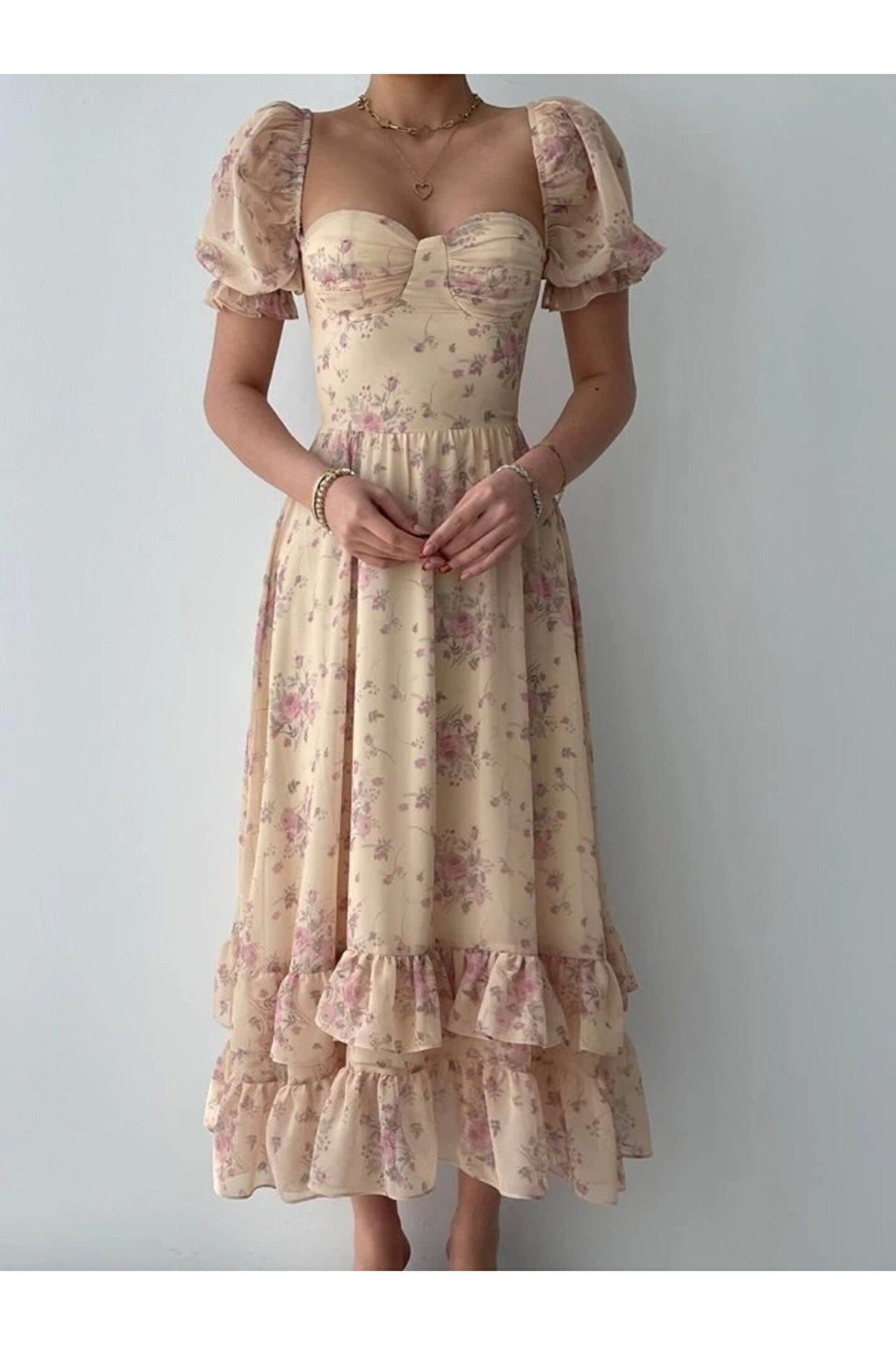 ŞİFON KUMAŞ DİJİTAL DESEN BASKILI ELBİSE