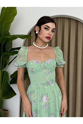 ŞİFON KUMAŞ DİJİTAL DESEN BASKILI ELBİSE