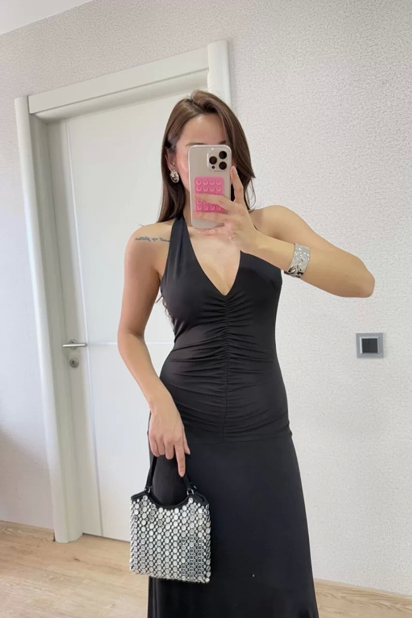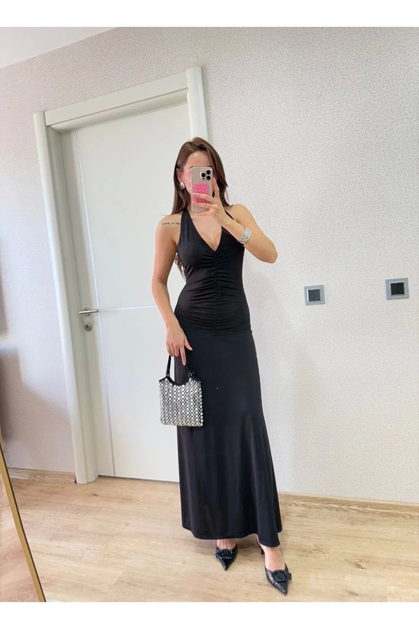 | Detay | Kolsuz, Uzun Elbise, Acık Sırt Detaylı, Bağacıklı |