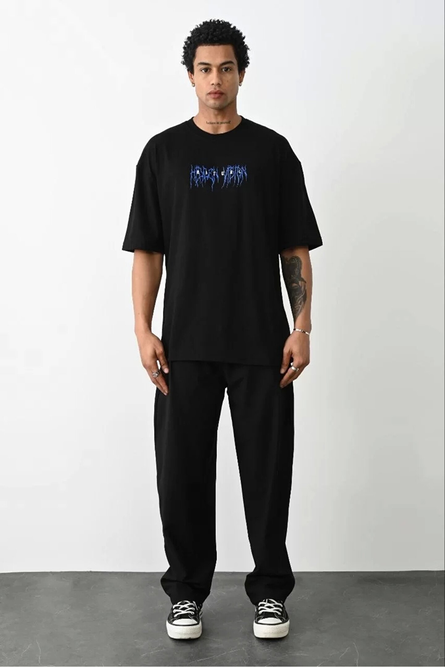 Silerra Unisex Baskılı Oversize T-Shirt - Siyah