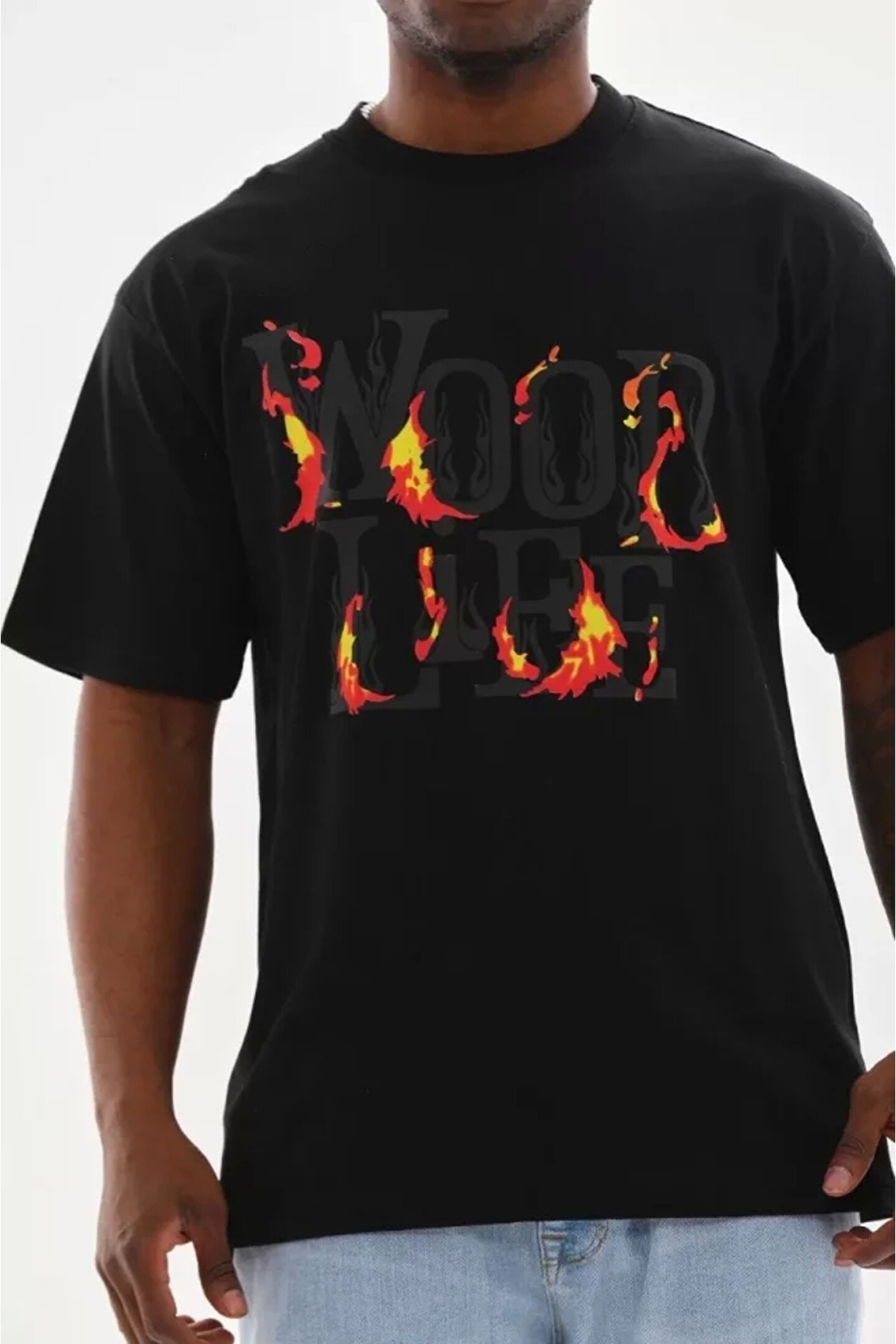 Unisex Baskılı Oversize T-Shirt - Siyah