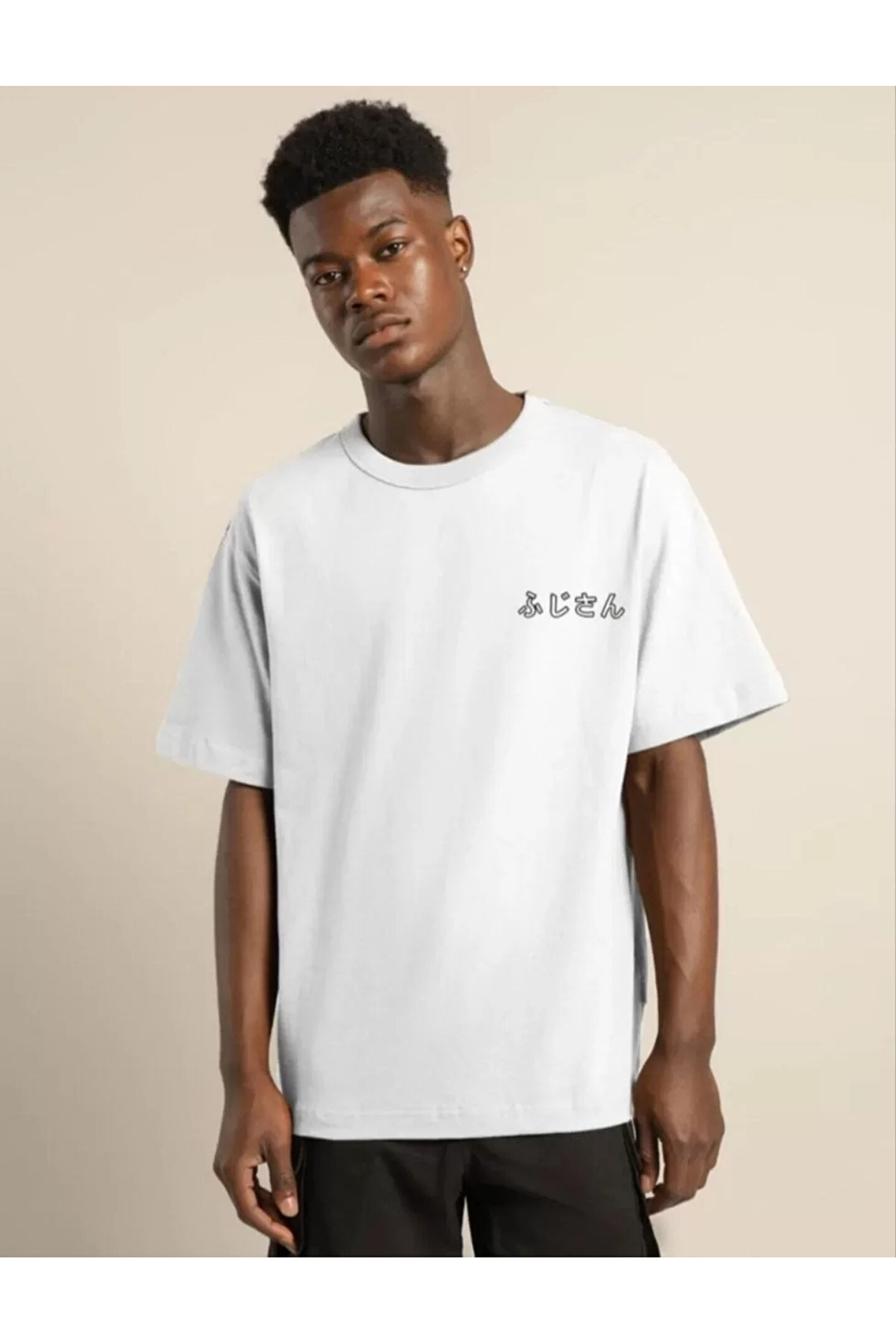 Silerra Unisex Bisiklet Yaka Baskılı Oversize T-Shirt - Beyaz