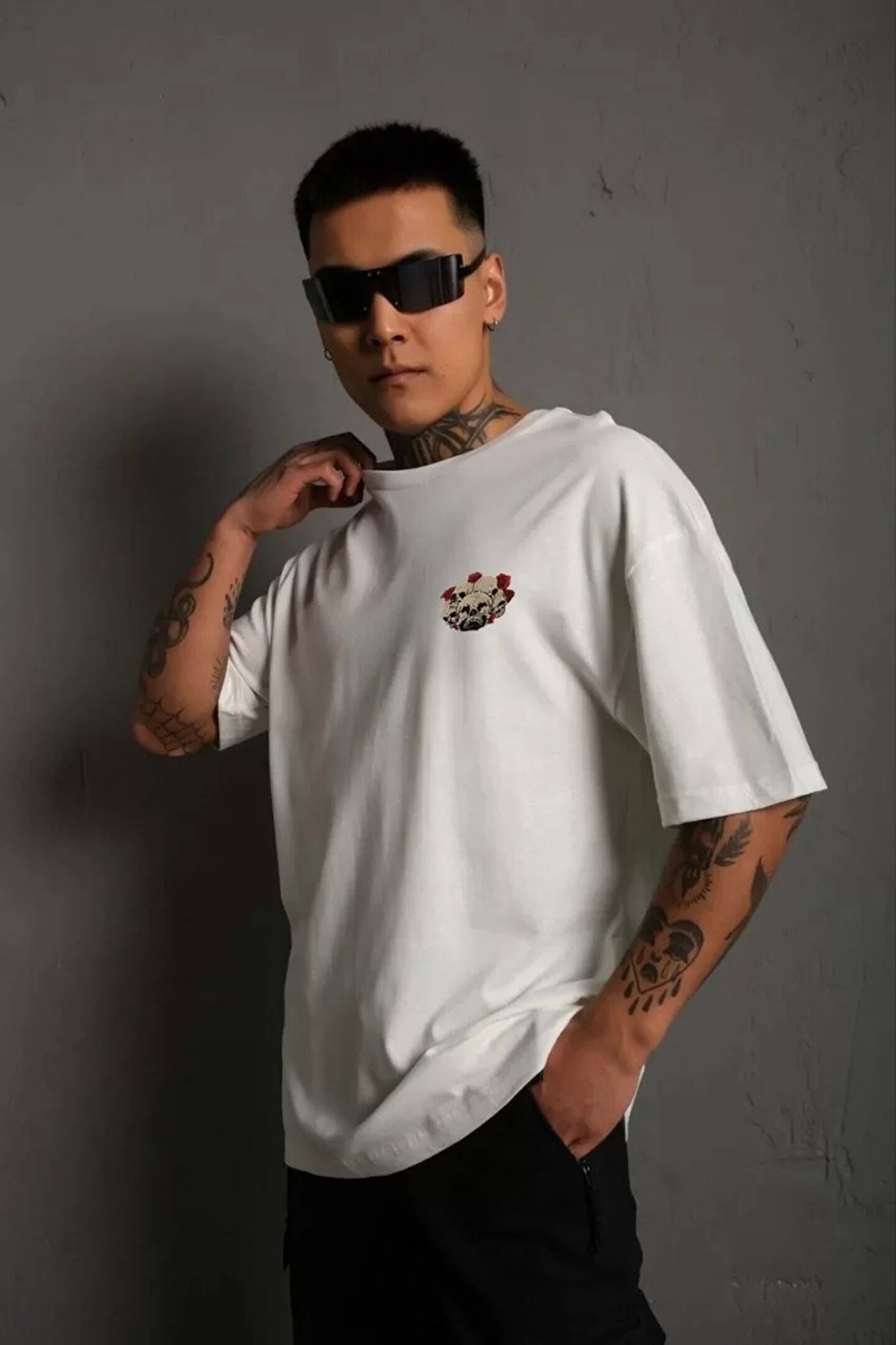 Silerra Unisex Bisiklet Yaka Baskılı Oversize T-Shirt - Beyaz