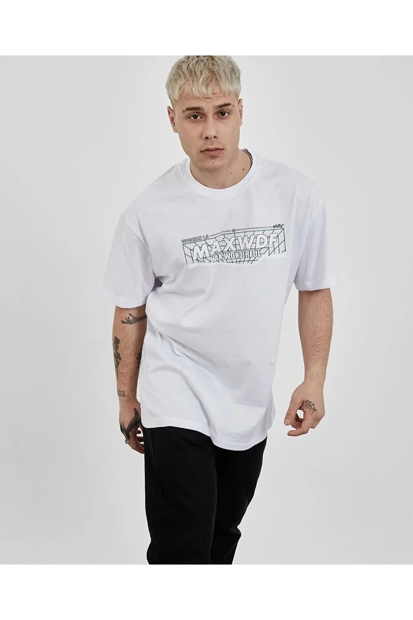Silerra Unisex Bisiklet Yaka Baskılı Oversize T-Shirt - Beyaz
