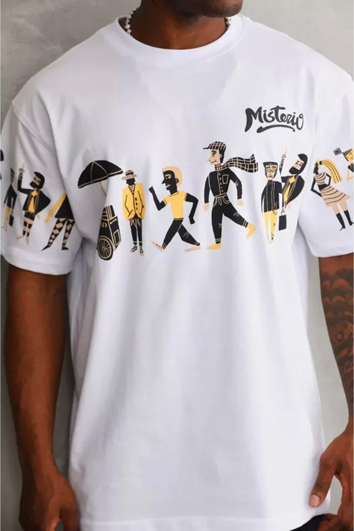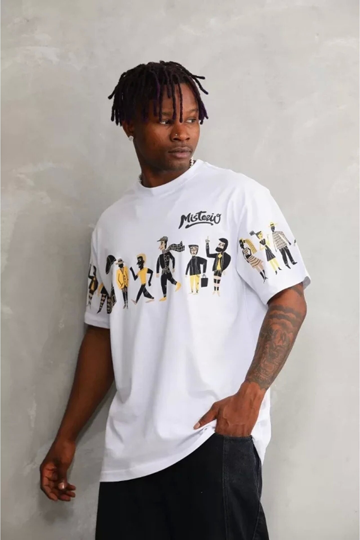 Silerra Unisex Bisiklet Yaka Baskılı Oversize T-Shirt - Beyaz