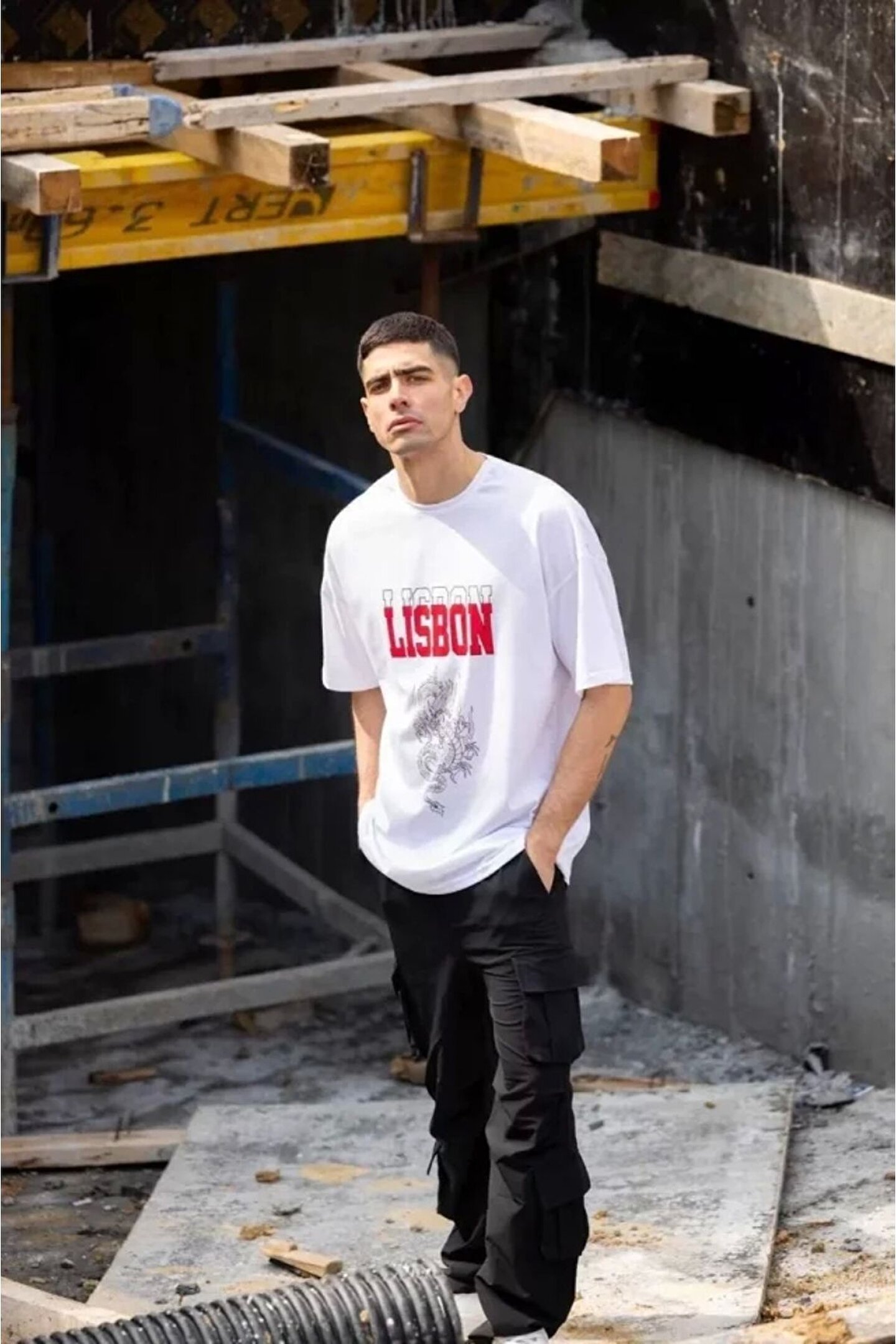 Silerra Unisex Bisiklet Yaka Baskılı Oversize T-Shirt - Beyaz