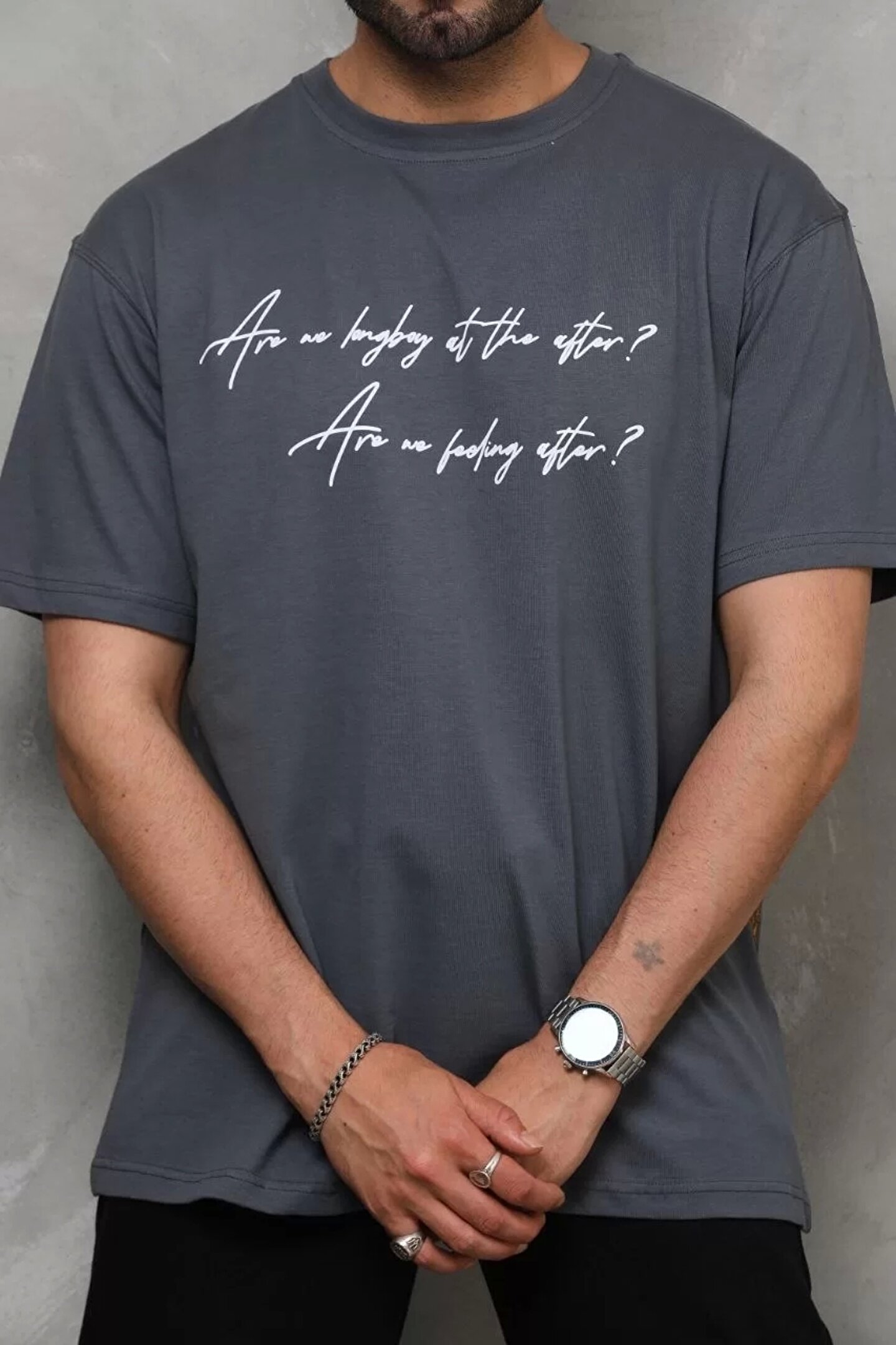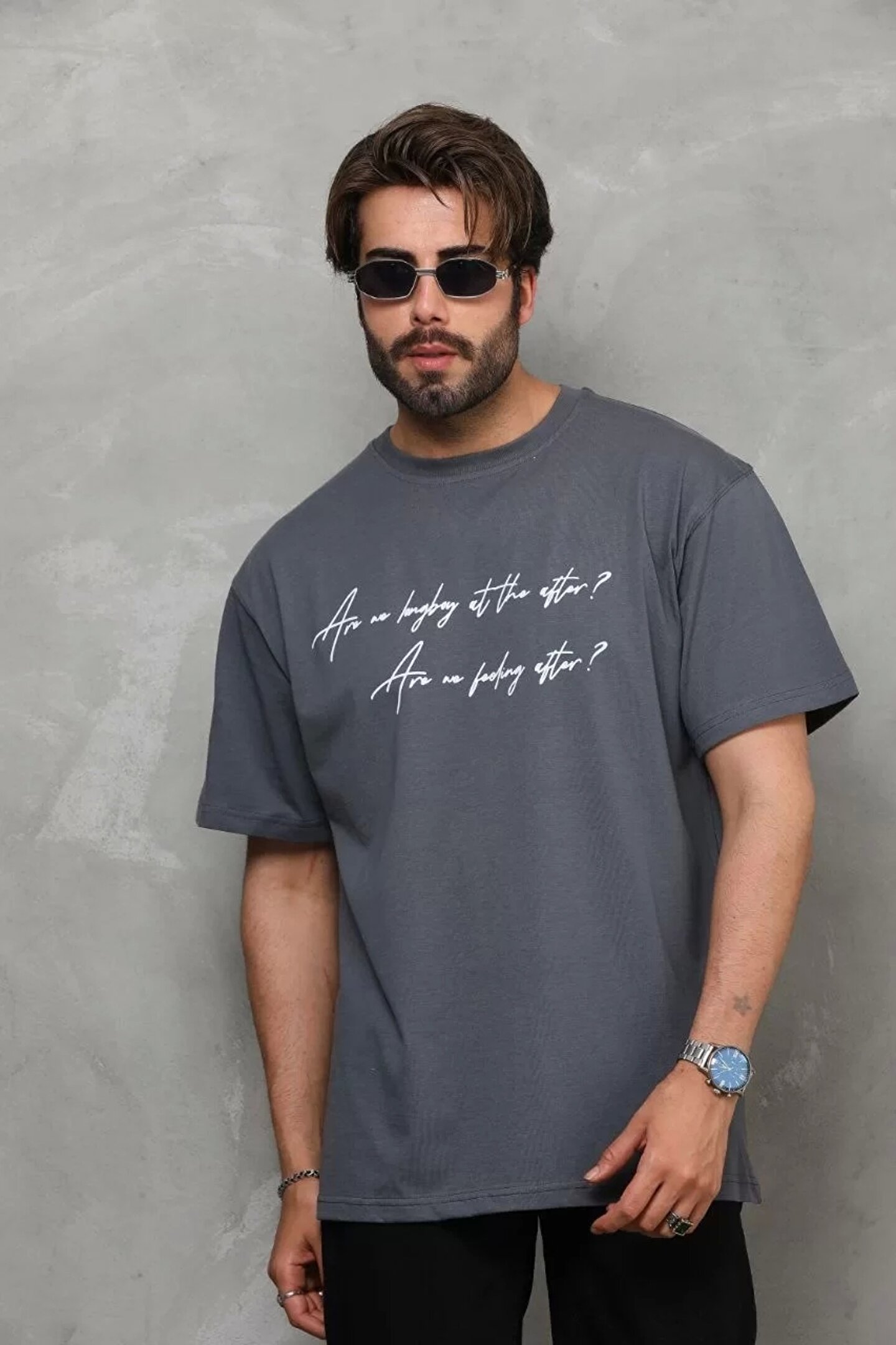 Silerra Unisex Bisiklet Yaka Baskılı Oversize T-Shirt - Füme