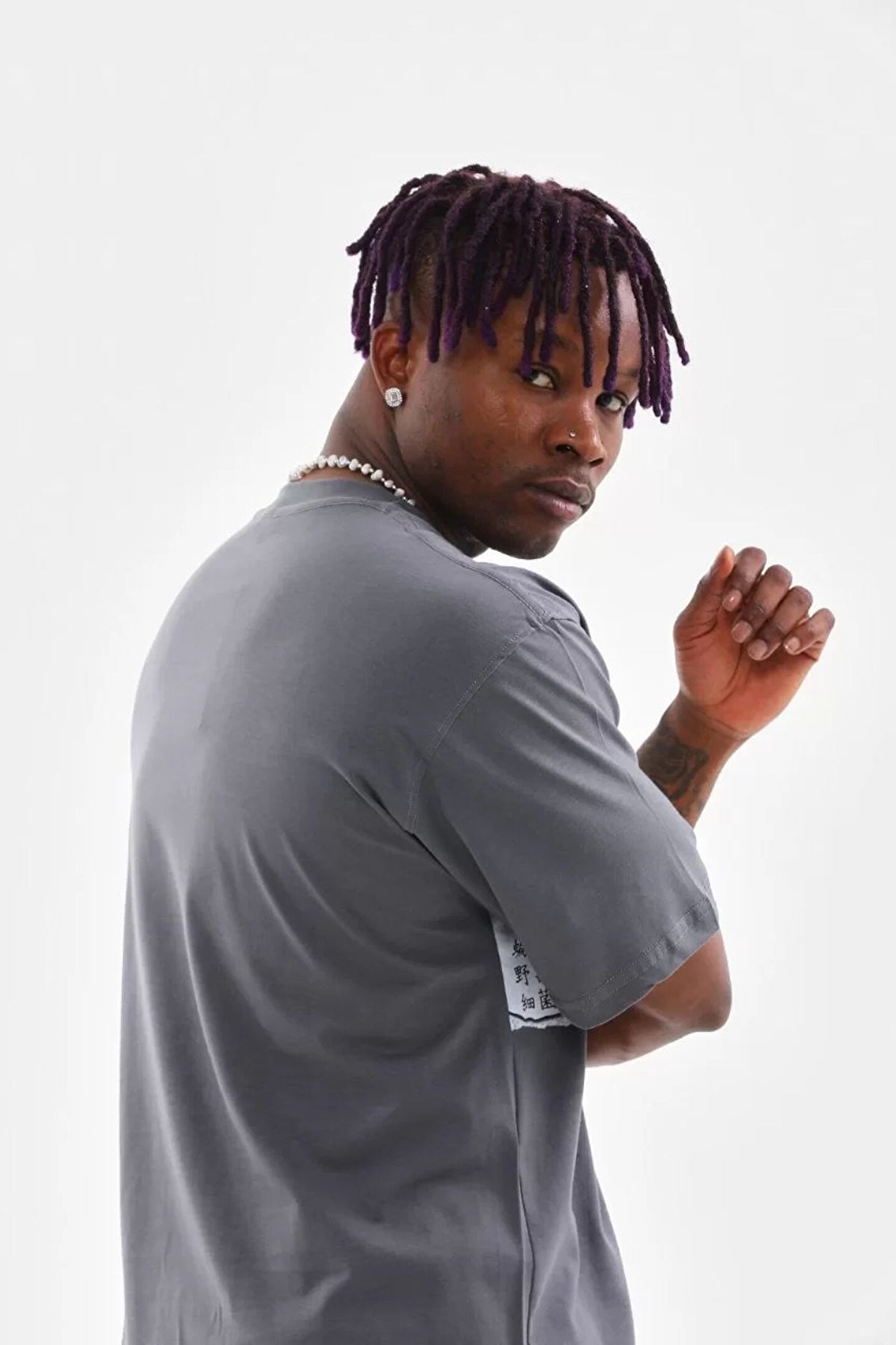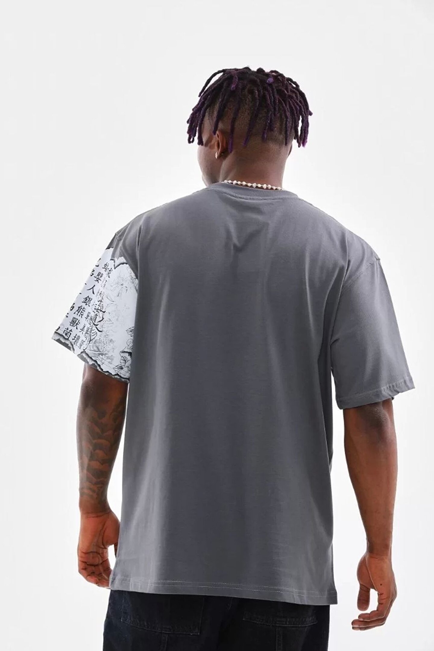 Silerra Unisex Bisiklet Yaka Baskılı Oversize T-Shirt - Gri