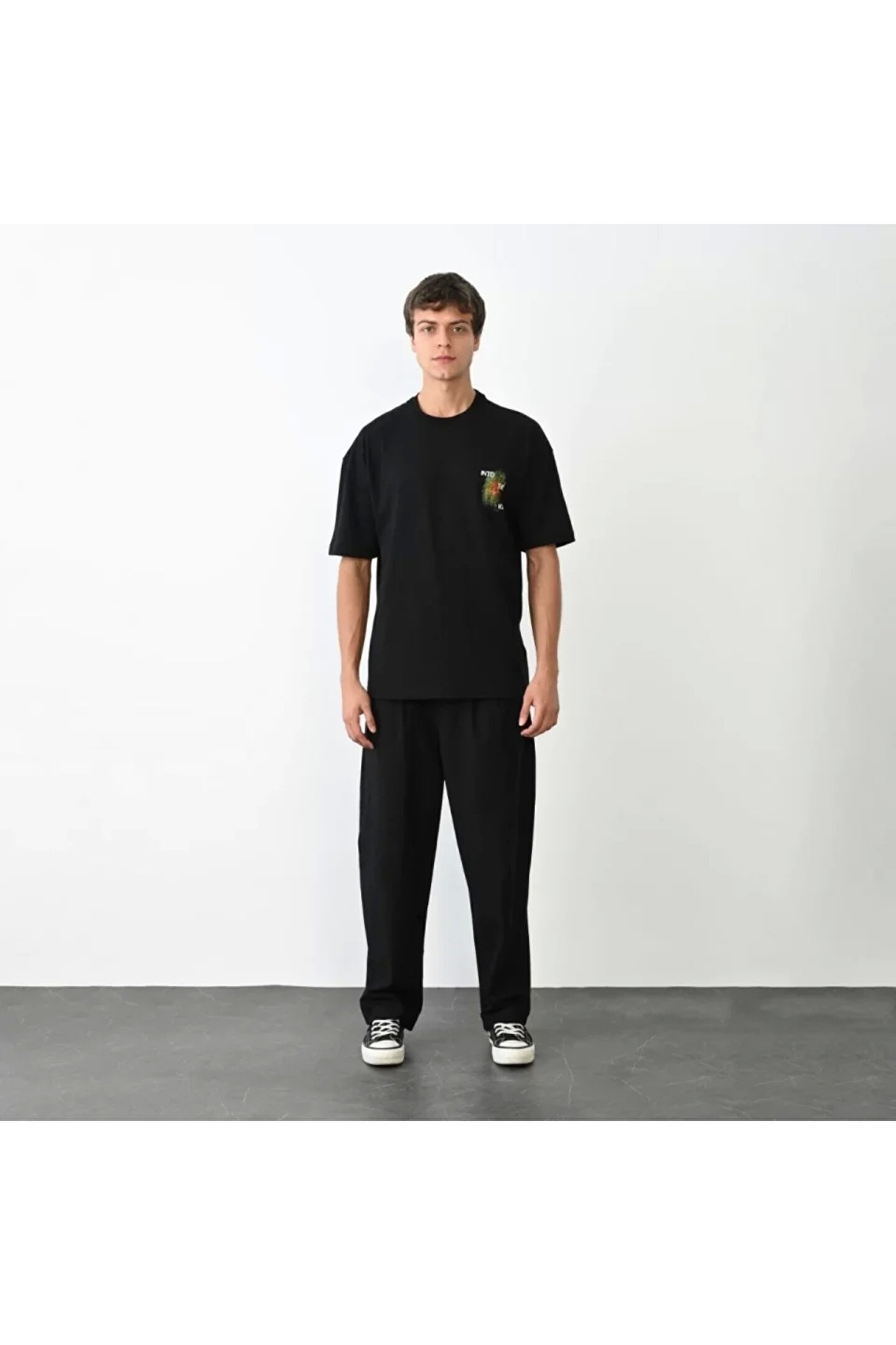 Silerra Unisex Bisiklet Yaka Baskılı Oversize T-Shirt - Siyah