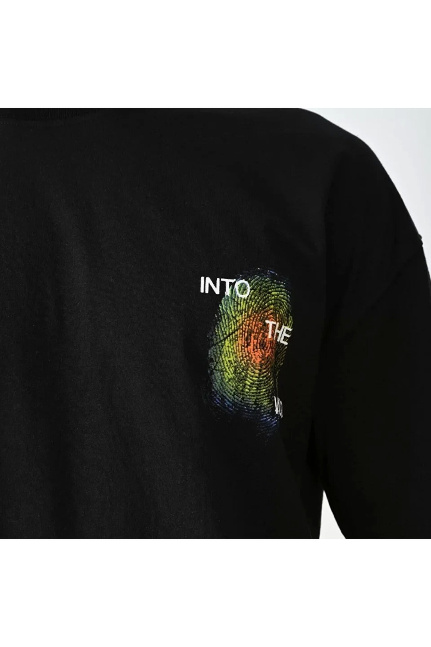 Unisex Bisiklet Yaka Baskılı Oversize T-Shirt - Siyah