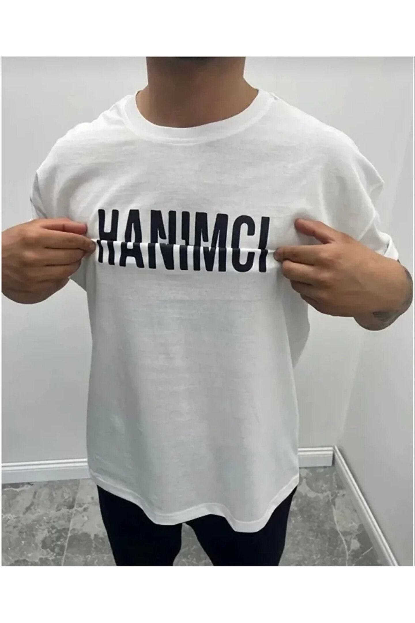 Unisex Bisiklet Yaka Katlanan Baskılı T-Shirt - Beyaz