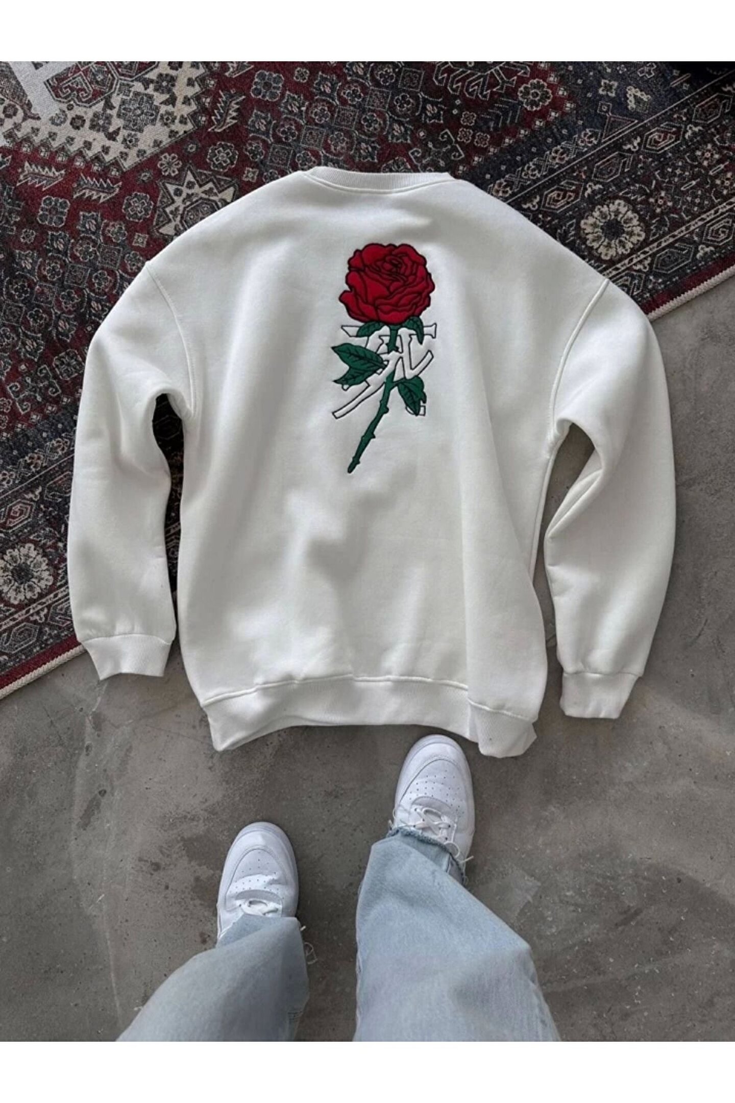 Silerra Unisex Bisiklet Yaka Ön Ve Arka Baskılı SweatShirt - Beyaz