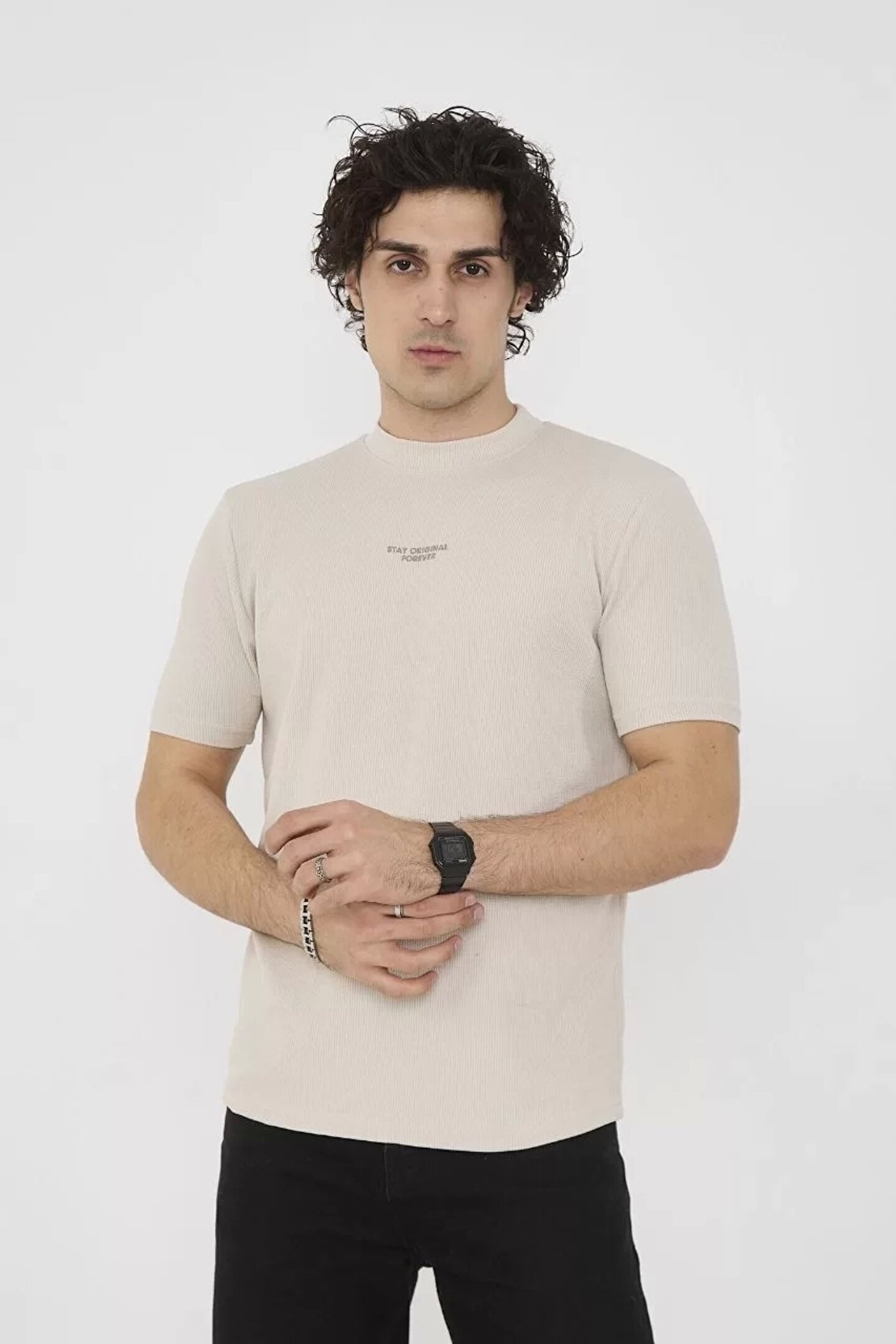 Silerra Unisex Bisiklet Yaka Slim fit T-Shirt- Bej