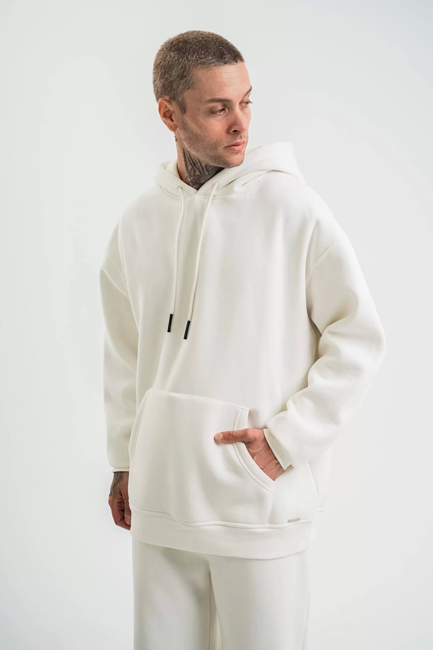 Silerra Unisex Double Oversize Kapşonlu Basic SweatShirt - Beyaz