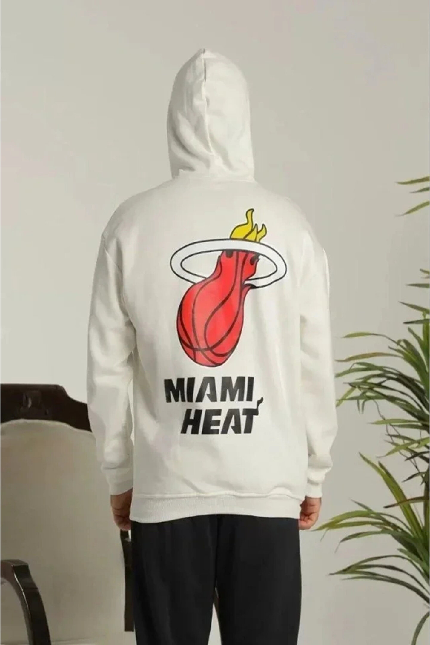 Unisex Kapşonlu Baskılı Sweetshirt - Beyaz