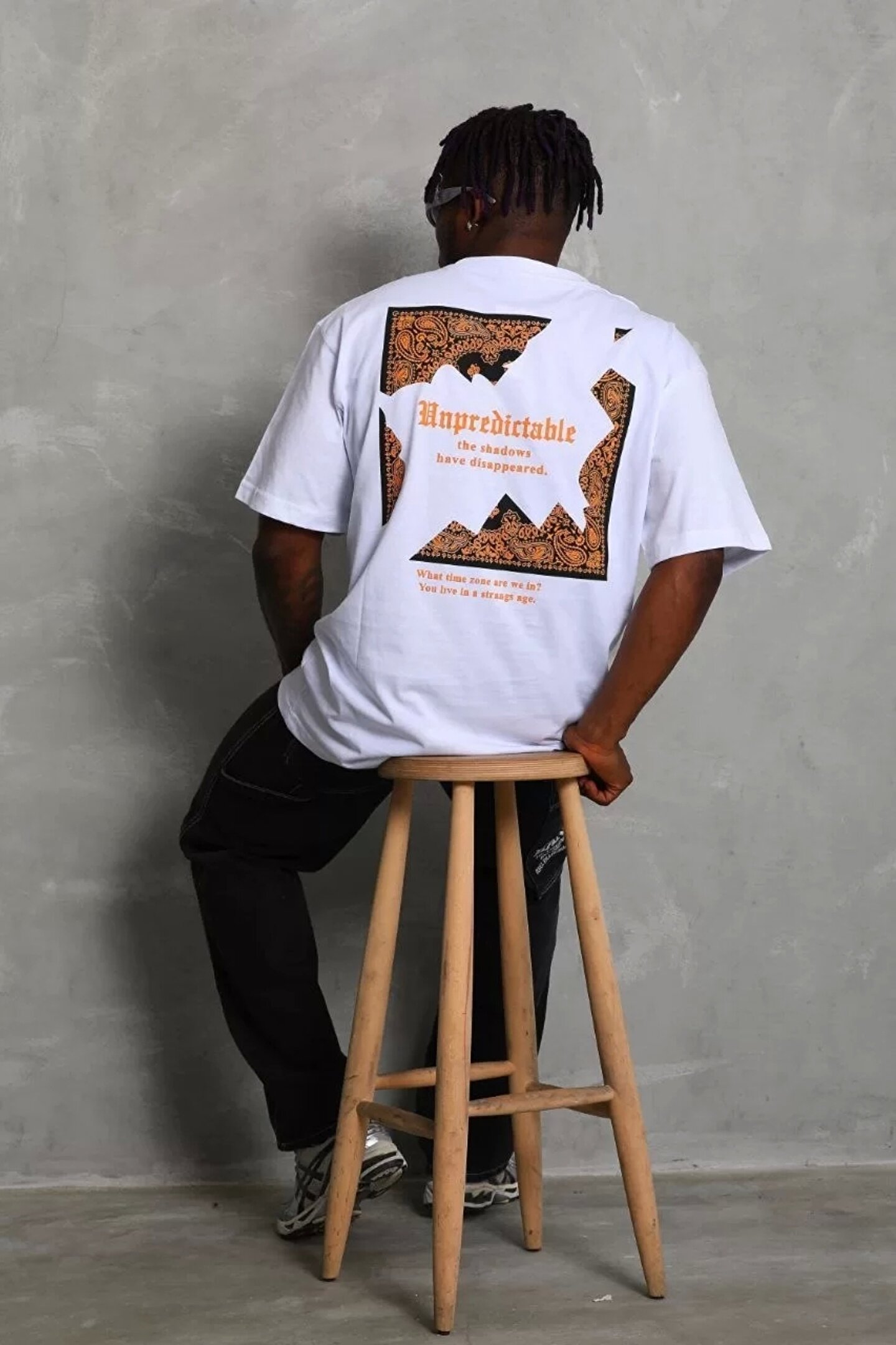 Silerra Unisex Oversize Baskılı Bisiklet Yaka T-Shirt - Beyaz