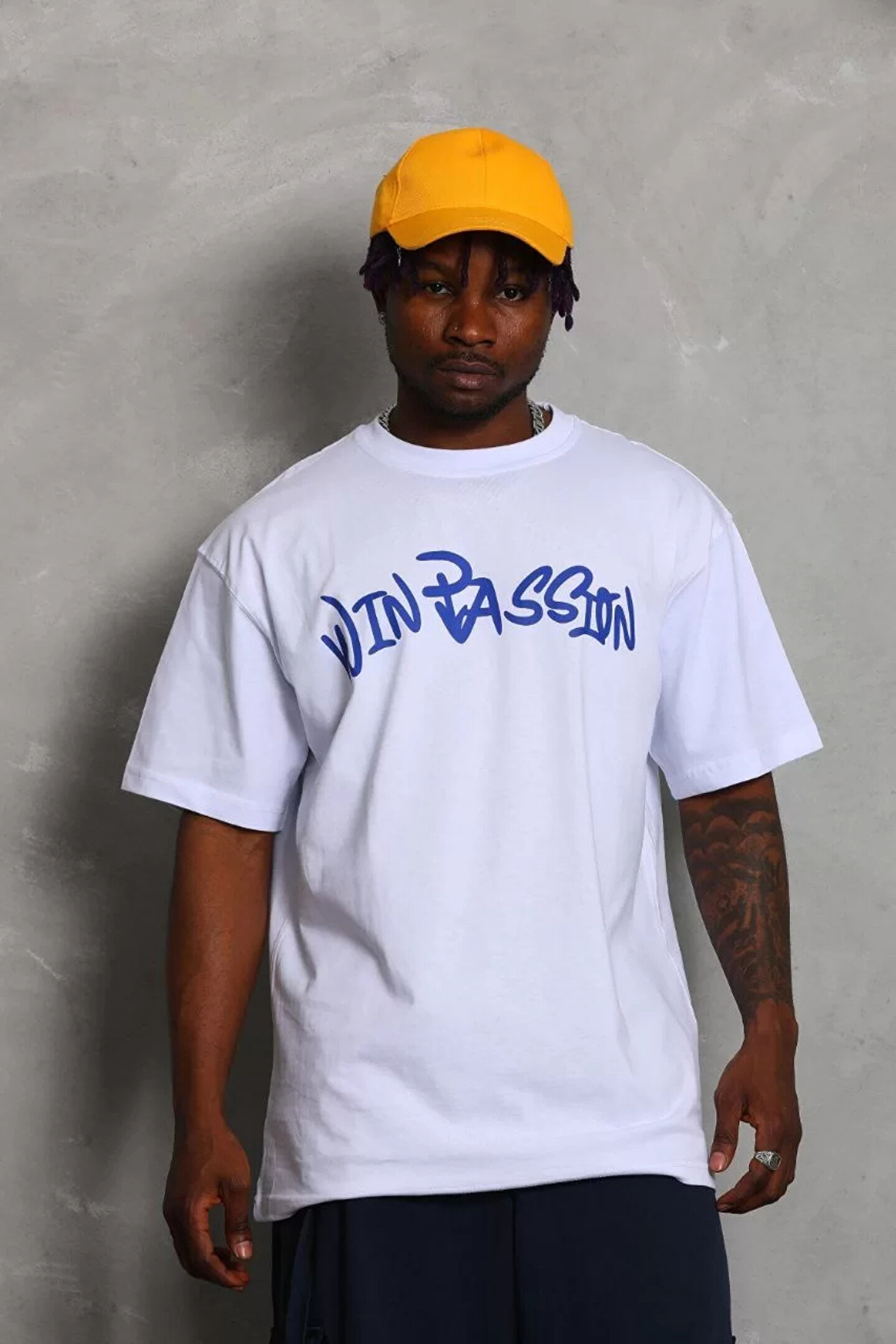 Silerra Unisex Oversize Baskılı Bisiklet Yaka T-Shirt - Beyaz