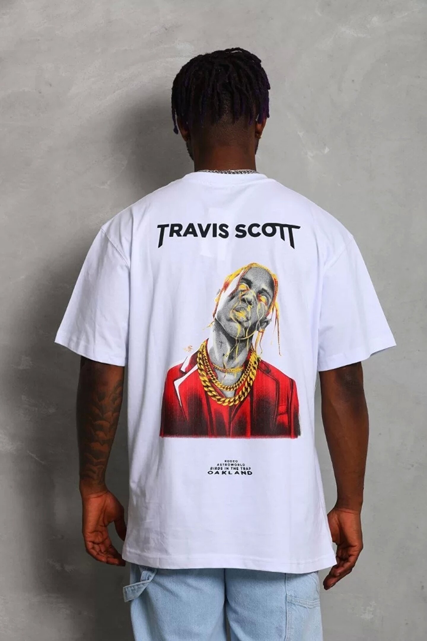 Silerra Unisex Oversize Baskılı Bisiklet Yaka T-Shirt - Beyaz