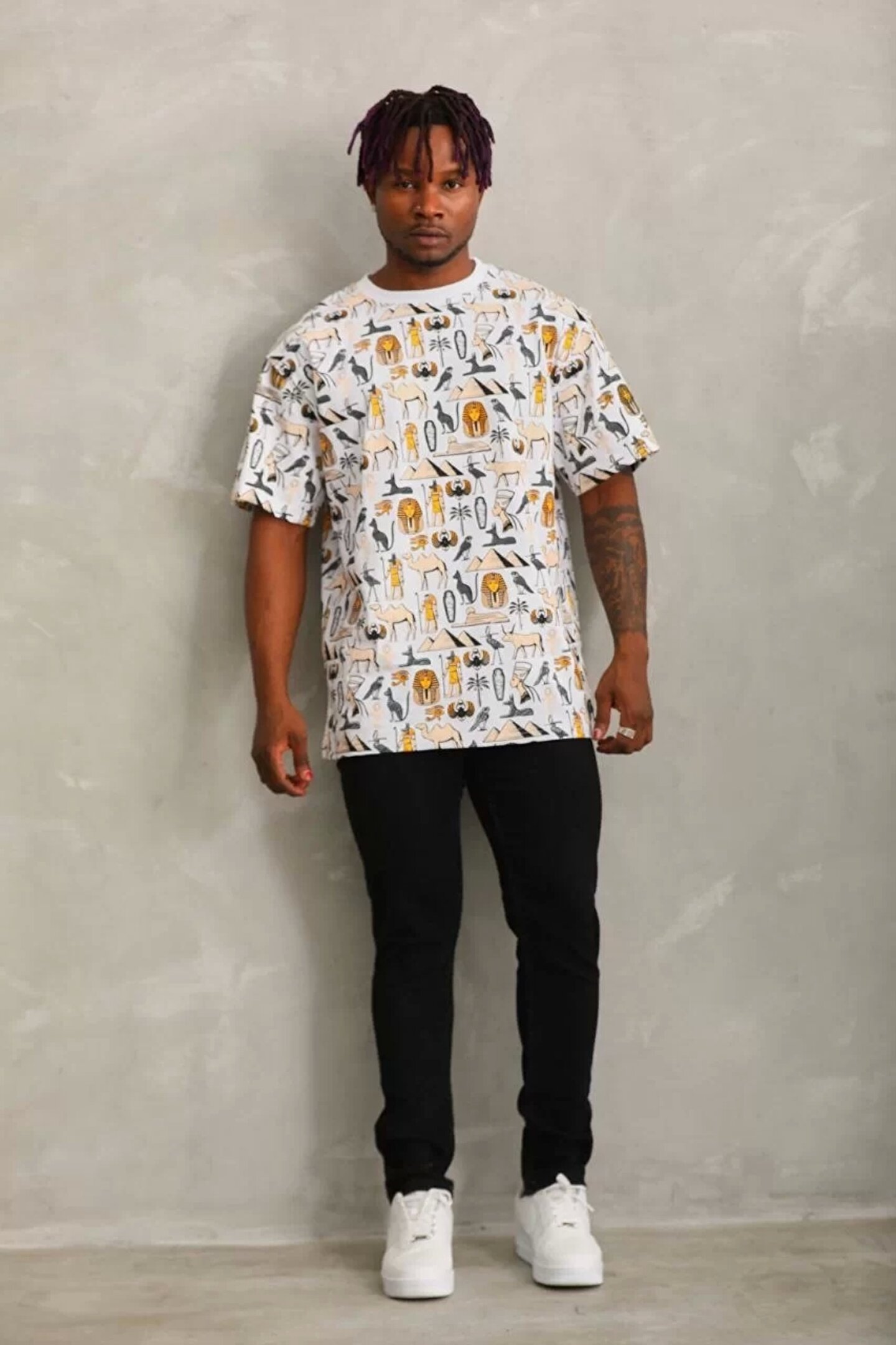 Silerra Unisex Oversize Baskılı Bisiklet Yaka T-Shirt - Beyaz