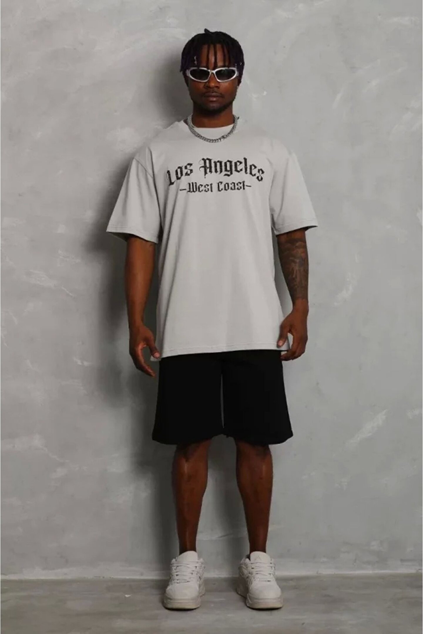 Silerra Unisex Oversize Baskılı Bisiklet Yaka T-Shirt - Gri