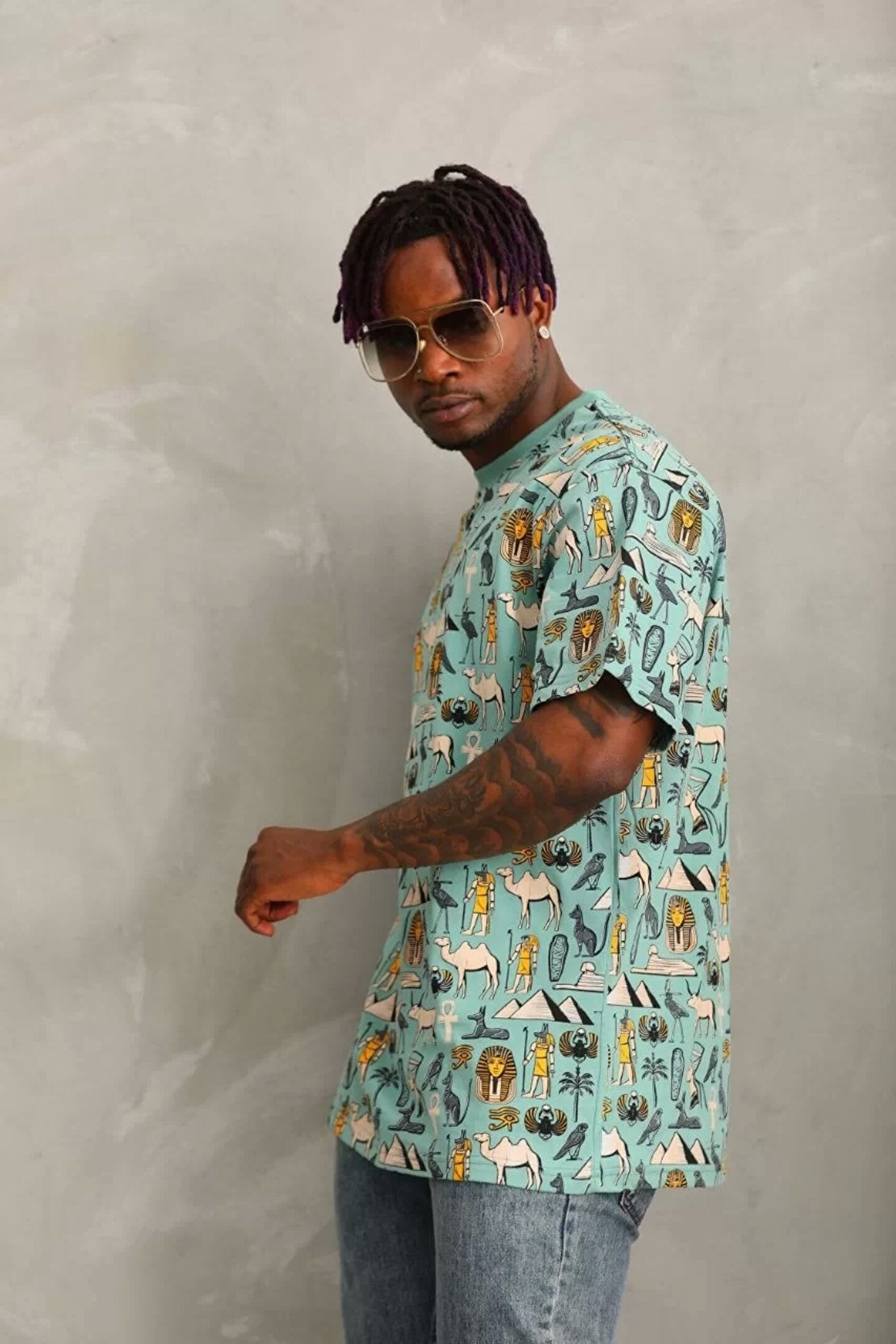 Silerra Unisex Oversize Baskılı Bisiklet Yaka T-Shirt - Mint Yeşili