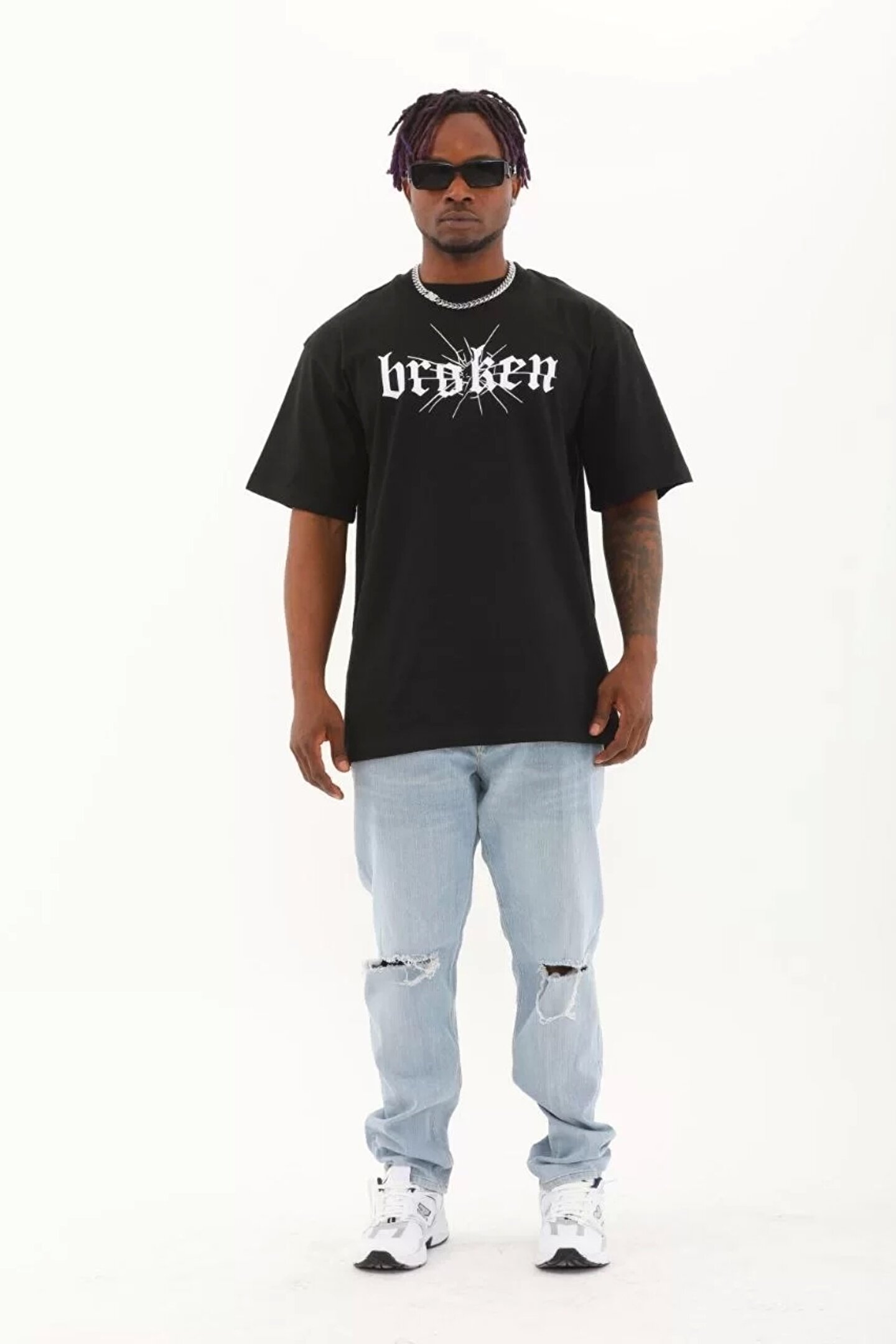 Silerra Unisex Oversize Baskılı Bisiklet Yaka T-Shirt - Siyah
