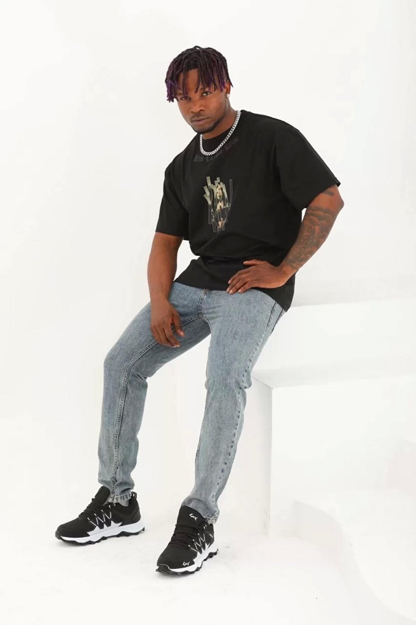 Silerra Unisex Oversize Baskılı Bisiklet Yaka T-Shirt - Siyah
