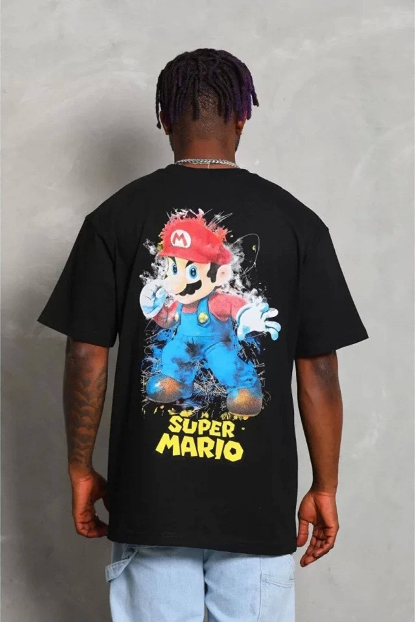 Unisex Oversize Baskılı Bisiklet Yaka T-Shirt - Siyah