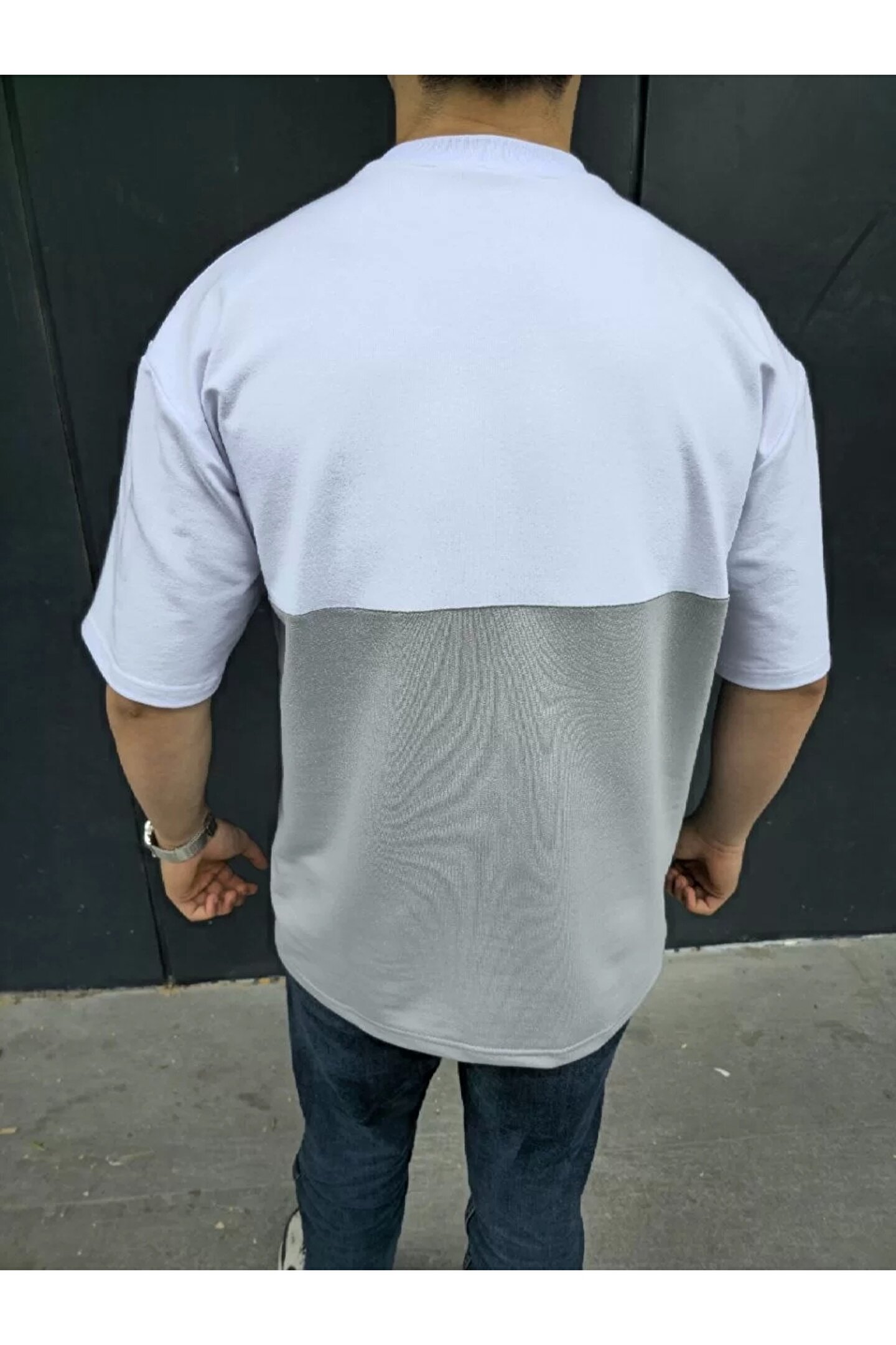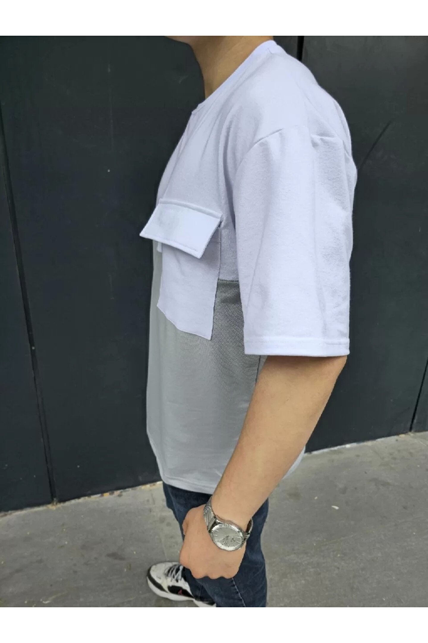 Unisex Torba Cep Detaylı Parçalı T-Shirt - Gri
