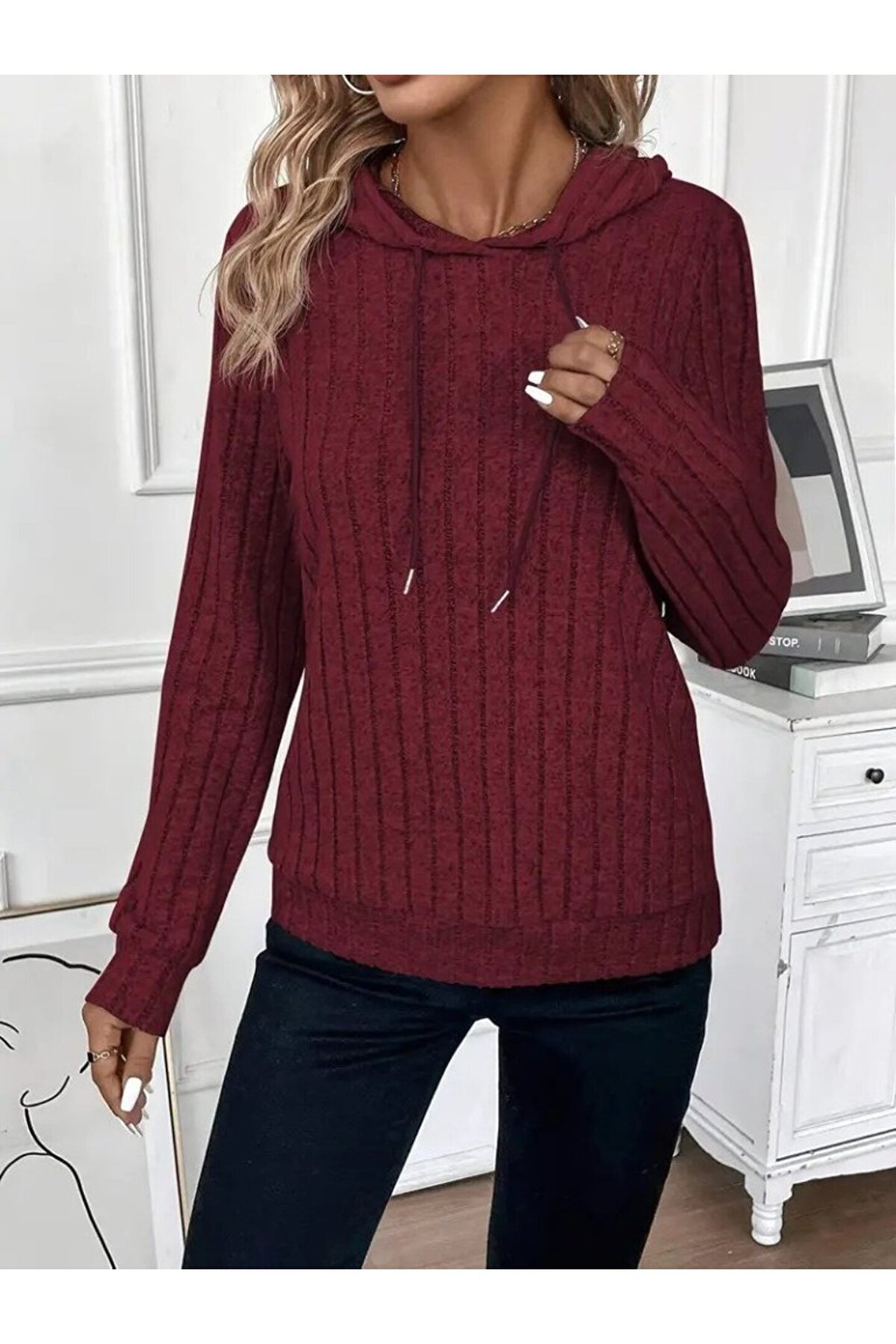 Kadın Uzun Kollu Kapşonlu Bağcıklı şardonlu Kaşkorse Bluz