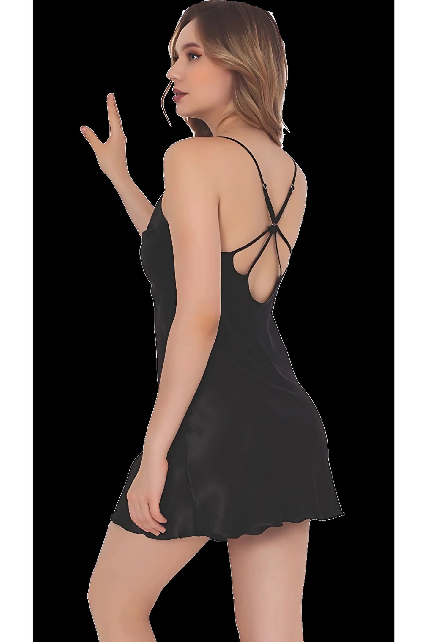 Desteksiz ve balensiz tasarımı sayesinde konforlu bir kullanım sunarken, ayarlanabilir ince askılar vücuda tam oturur. Gecelik, tek parça yapısıyla sade ama etkileyici bir duruş arayanlar için ideal bir seçimdir.