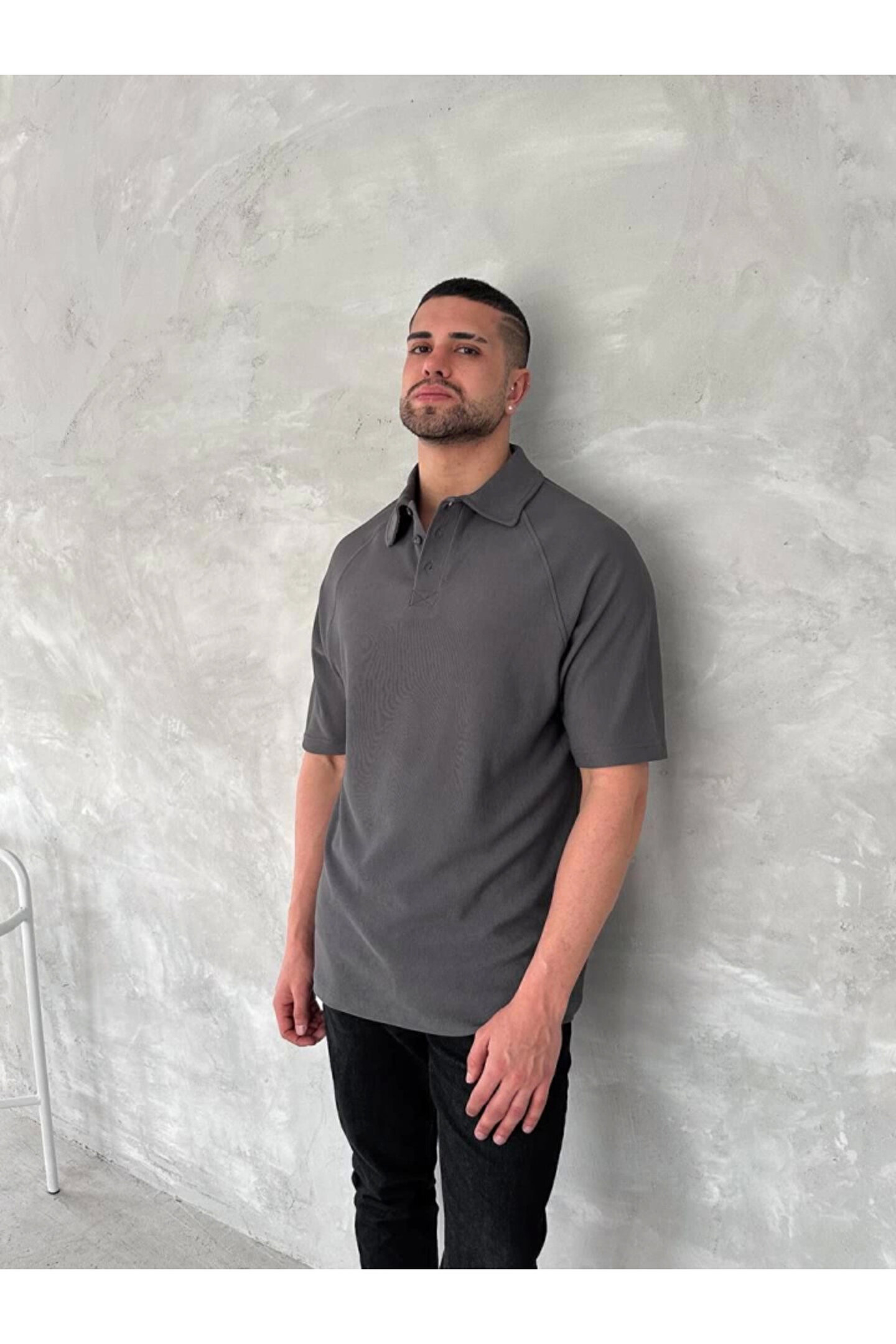 Yakalı Patlı Kısa Kol T-shirt - Antrasit