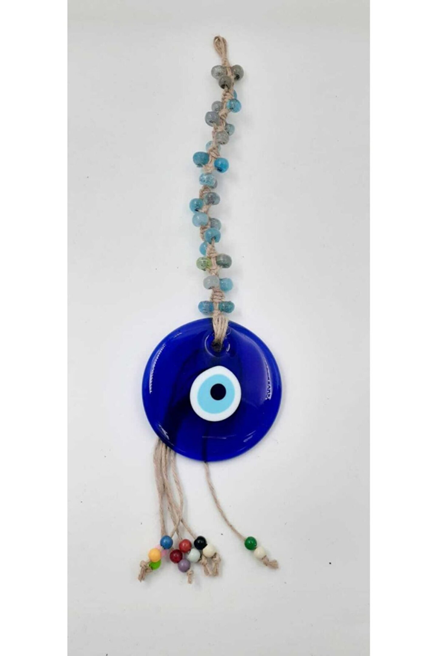Nazar boncuğu, insanı kem gözlerden koruduğuna inanılan boncuk. ; Tarih boyunca, çoğu kültürde ve dinsel inançta, göz figürü kötülükleri savan güçlü bir tılsım olarak kabul edilmiştir. ; Ürün nazar boncuğu camı dahil tamamen el yapımıdır. ; Bu harika nazar boncuğu ürünü ister evinizde kendiniz için, ister sevdiklerinize hediye almak için tercih edebilirsiniz. ; Ürün Ebat : Asma uzunluğu: 55 cm Birinci Nazar Boncuğu: 12 cm;