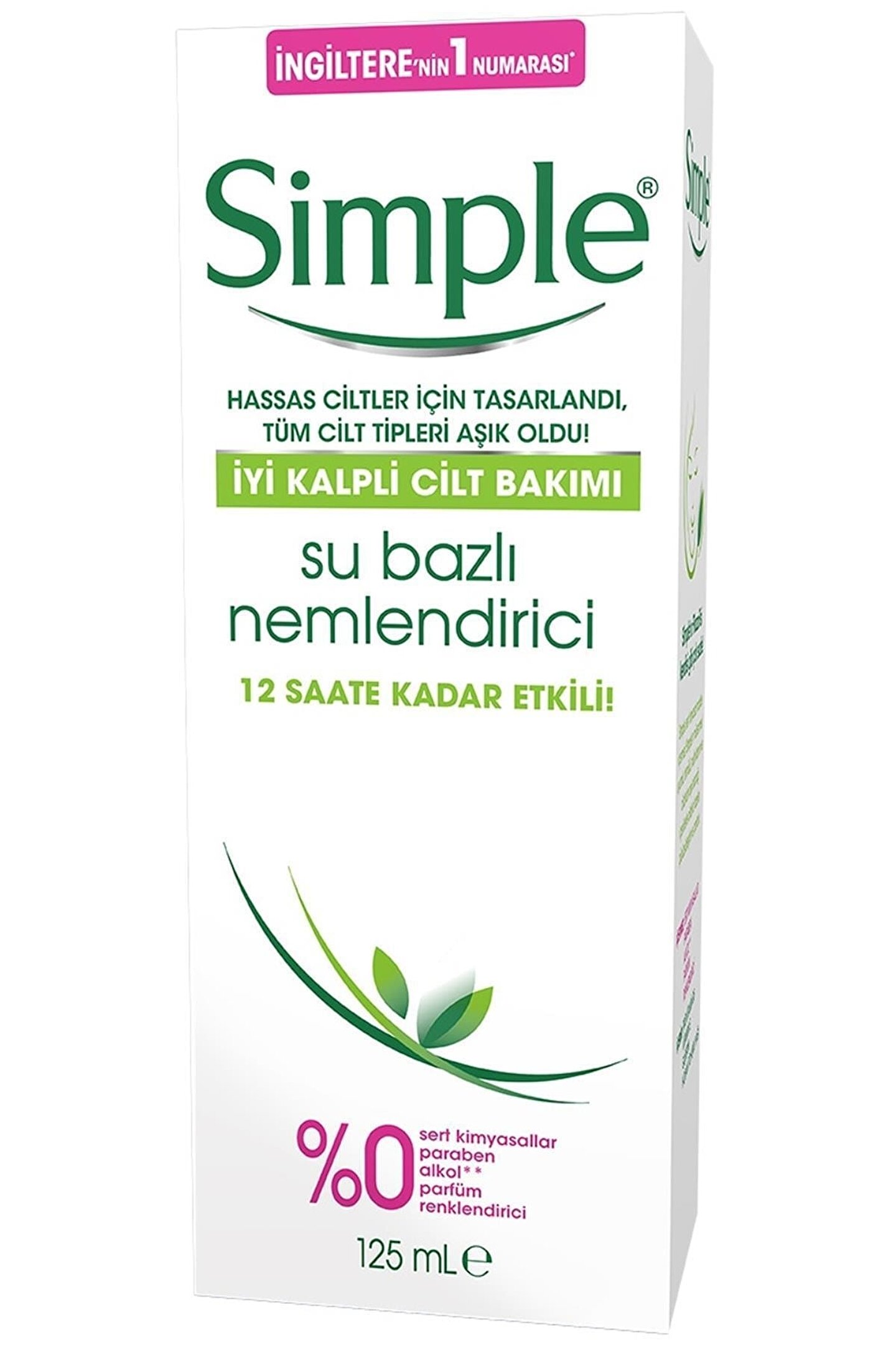 Simple Sımple Sensitive Skin Experts Kind To Skin Su Bazlı Nemlendirici 125 Ml Simple Kind To Skin Hassas Ciltlere Uygun Sert Kimyasal İçermeyen Su Bazlı Nemlendirici 125 ML İYİ KALPLİ CİLT BAKIMI Simple Su Bazlı Nemlendirici cildinizin aşık olacağı iyi kalpli içeriklerle dolu! CİLDİNİZE NAZİK BİR DOKUNUŞ Simple Su Bazlı Nemlendirici, sert kimyasallar içermeyen, parabensiz, alkolsüz; , parfümsüz ve renklendiricisiz içeriğiyle özellikle hassas ciltler için mükemmel bir seçim… Vitaminler (E ve B5 vitaminleri) ve iyi kalpli içeriklerden (gliserin, hodan tohumu yağı) oluşan formülü sayesinde cildinizin 12 saate kadar nemli kalmasına yardımcı olur; Vitaminler (E ve B5 vitaminleri) ve iyi kalpli içeriklerden (gliserin, hodan tohumu yağı) oluşan formülü sayesinde cildinizin 12 saate kadar nemli kalmasına yardımcı olur; Farklı deneyimler için iyi kalpli içeriklerden oluşan diğer Simple yüz bakım ürünleri ile tanışın; Etil alkol içermez; Oftalmolojik ve dermatolojik olarak test edilmiştir; Hayvansal kaynaklı içerik içermez; ;;