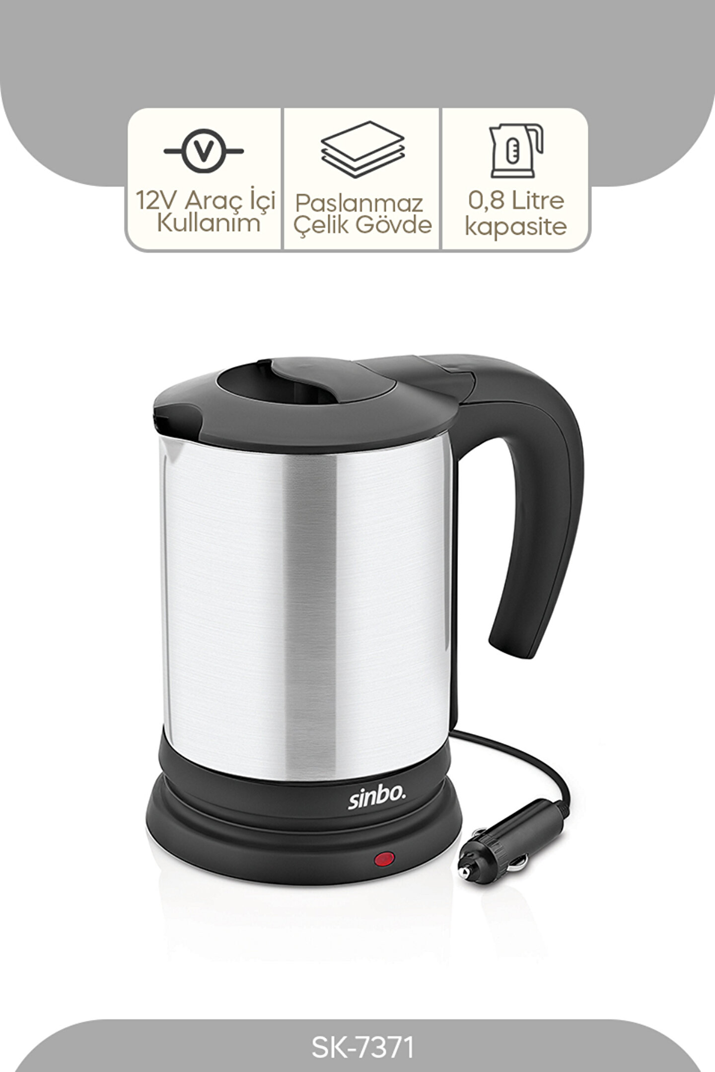 Sinbo SK-7371 Araç İçi Su Isıtıcı İthalatçı Garantili Çakmak Tipi 50 Hz 60 Hz Beyaz Çelik 2000
